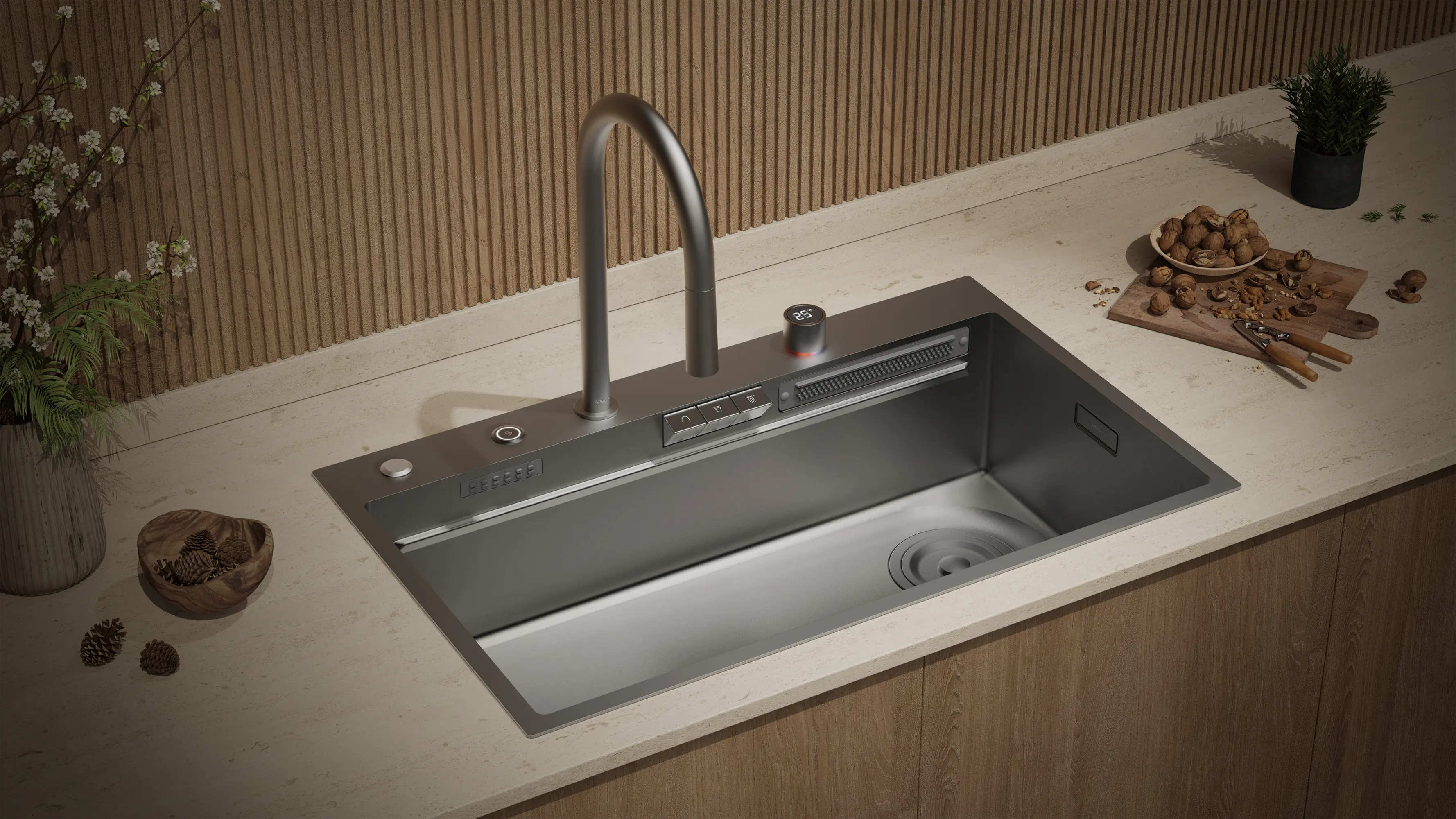 Die A6 vereint minimalistisches Design und smarte Technologie zu einer effizienten Küchenspüle. Sie verfügt über einen digitalen Temperaturregler und einen One-Touch-Klaviertastenschalter zur präzisen Wassereinstellung. Die Spüle bietet fünf Modi – darunter Spülen, Regenstrahl und Wasserfall – für vielfältige Aufgaben. Der exklusive Spülmodus, speziell für chinesische Haushalte, bietet einstellbare Wasser- und Schaummengen für Einzel- und Gruppennutzung. Weiche Düsen erleichtern das Abwischen von Rückständen und steigern so die Reinigungseffizienz. Das Design unterstützt den Mehrnutzerbetrieb, steigert die Produktivität und Küchenerlebnis.