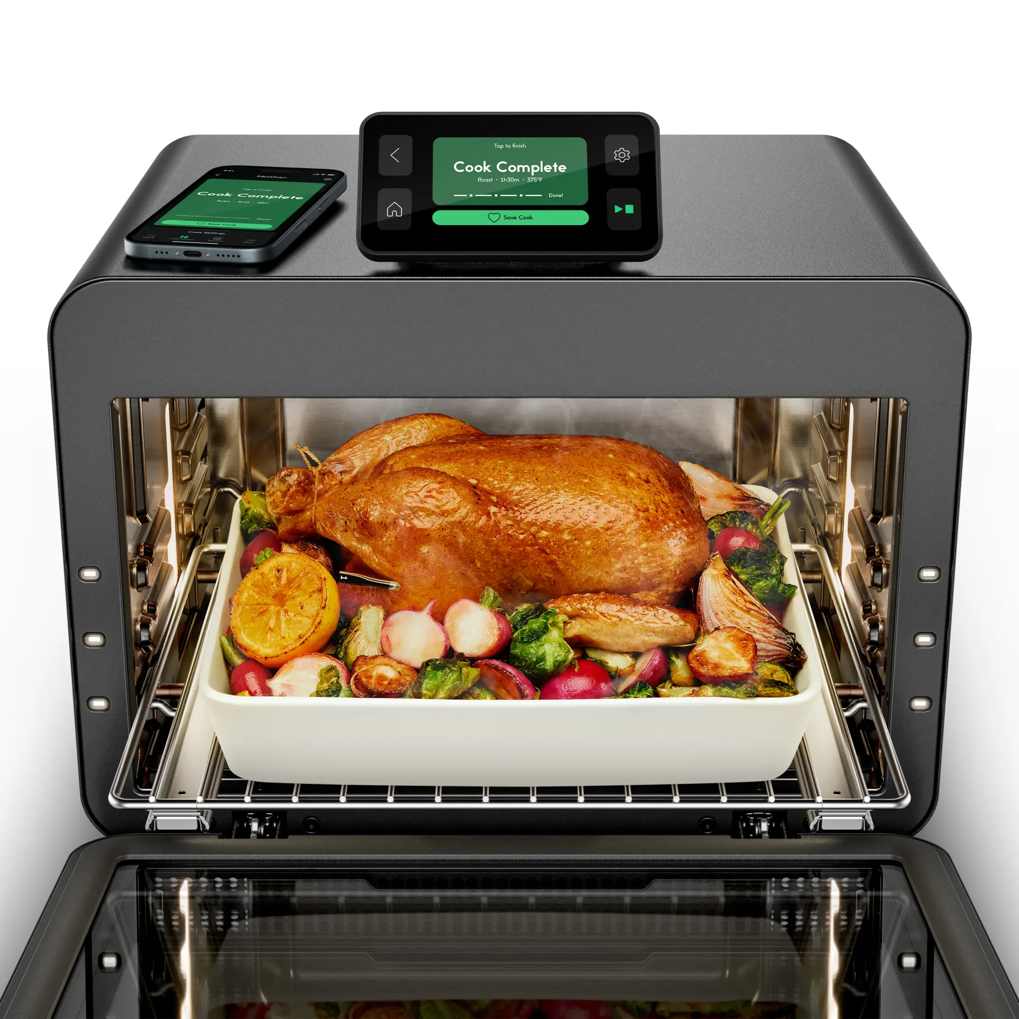 Der iQ MiniOven ist ein leistungsstarkes Gerät, das neue Maßstäbe setzt. Mit 11 Kochfunktionen, einer maximalen Temperatur von 500 °F und einem 3200-U/min-Gleichstrommotor gart er 40 % schneller als herkömmliche Öfen. Sein 25-Quart-Innenraum bietet Platz für eine 13-Zoll-Pizza und bleibt dennoch schlank und kompakt. In nahtloser Verbindung mit dem iQ Sense-Thermometer sorgt er für präzises Garen ohne Spekulationen. Mit WLAN-Funktion, App-Anbindung und zahlreichen Voreinstellungen ist er der einzige Ofen, der backen, braten, frittieren und toasten kann – alles mit einem einzigen Fingertipp. Intelligent, stilvoll und auf überragende Leistung ausgelegt – das ist die Zukunft des Kochens auf der Arbeitsplatte.
