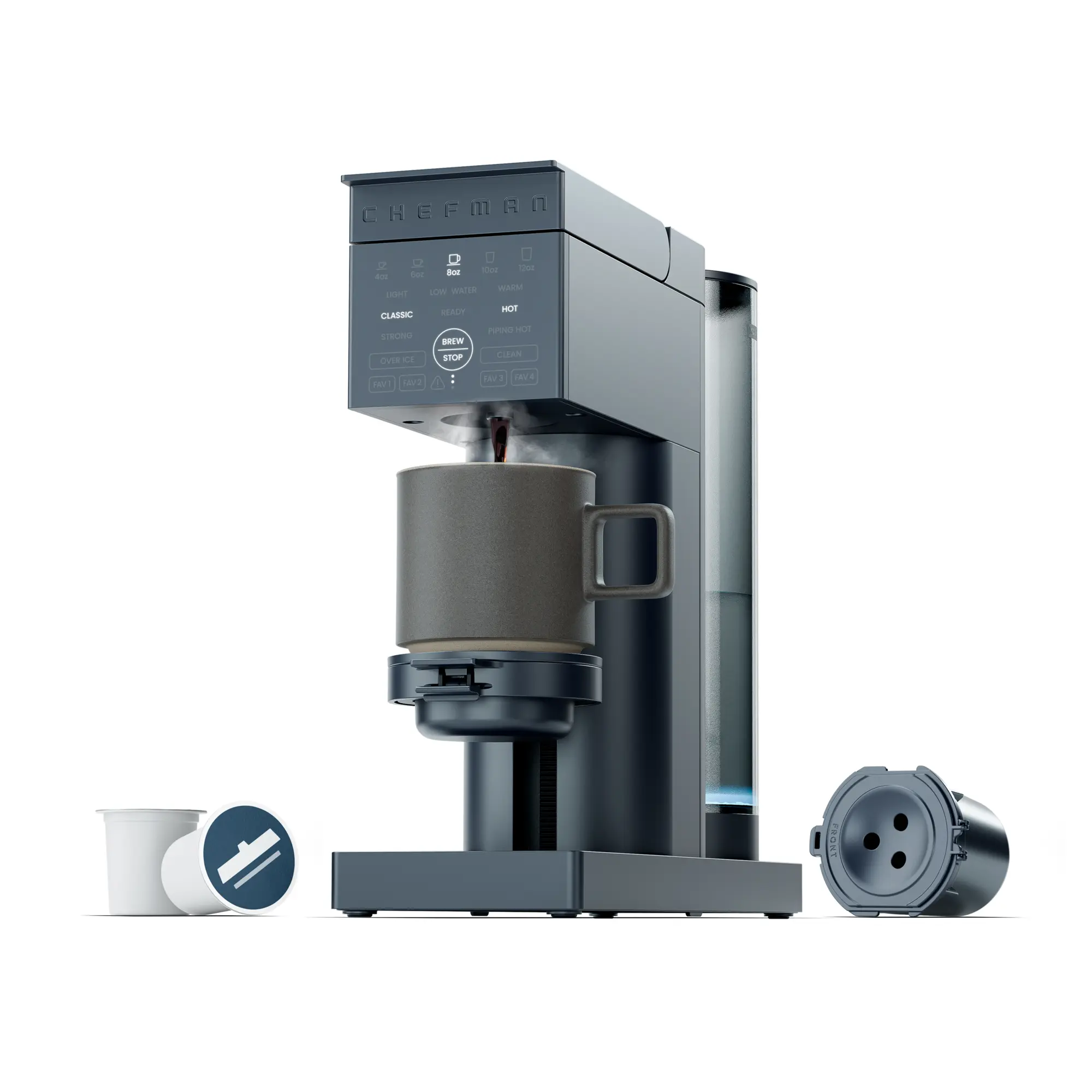 Die Chefman C14-DB K-Cup Dual-Kaffeemaschine ist die ultimative Einzelservicelösung für moderne Kaffeeliebhaber. Mit doppelter Kompatibilität für K-Cups und gemahlenen Kaffee, einem abnehmbaren 1,4-Liter-Wassertank und programmierbarer Brühstärke und -temperatur liefert sie Kaffee in Café-Qualität für zu Hause. Die TripleStream™-Technologie sorgt für einen kräftigen Geschmack, während die Eiskaffeefunktion für kühlen Kaffee ohne Verdünnung sorgt. Kompakt, elegant und mit intelligenten Funktionen ausgestattet, ist sie die vielseitigste Kaffeemaschine ihrer Klasse – entwickelt, um auf jeder Arbeitsplatte zu dominieren und alle Erwartungen zu übertreffen.