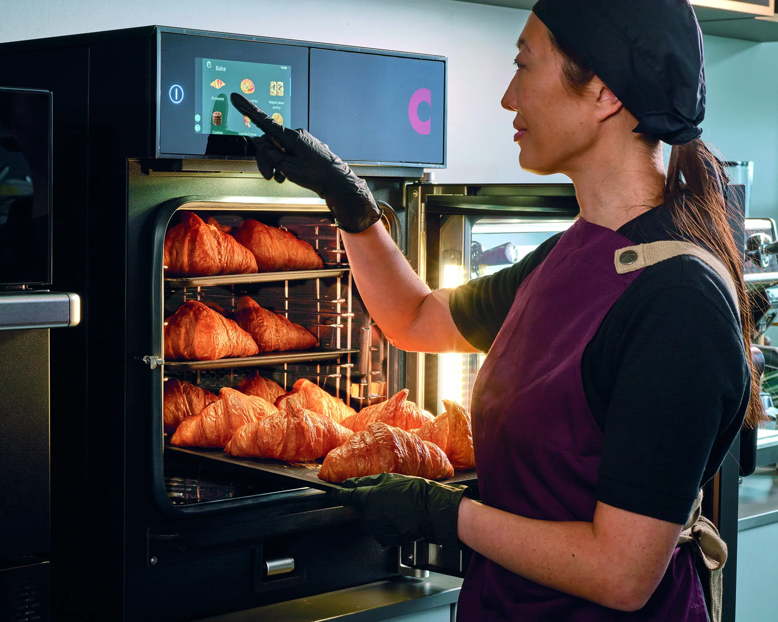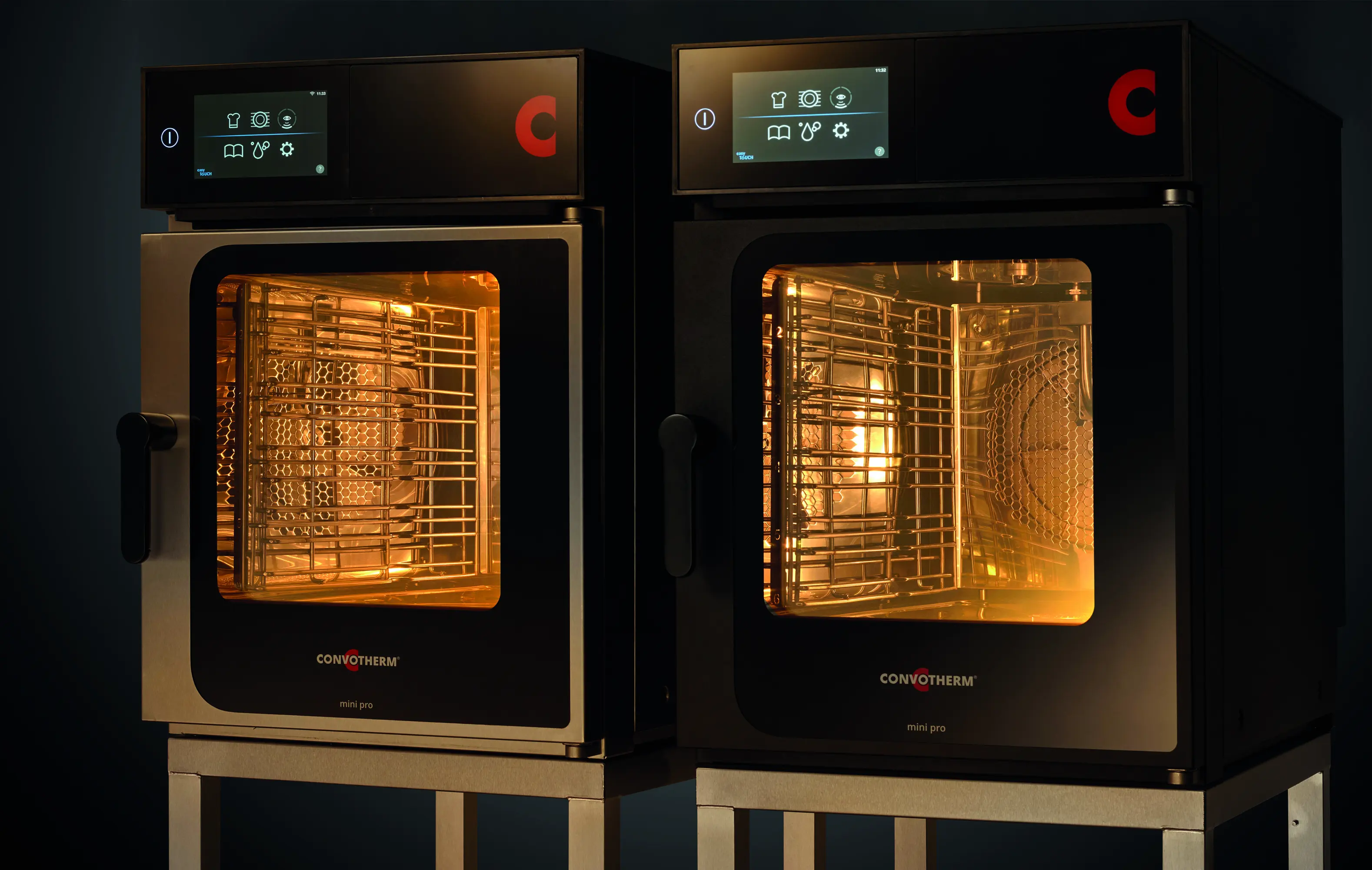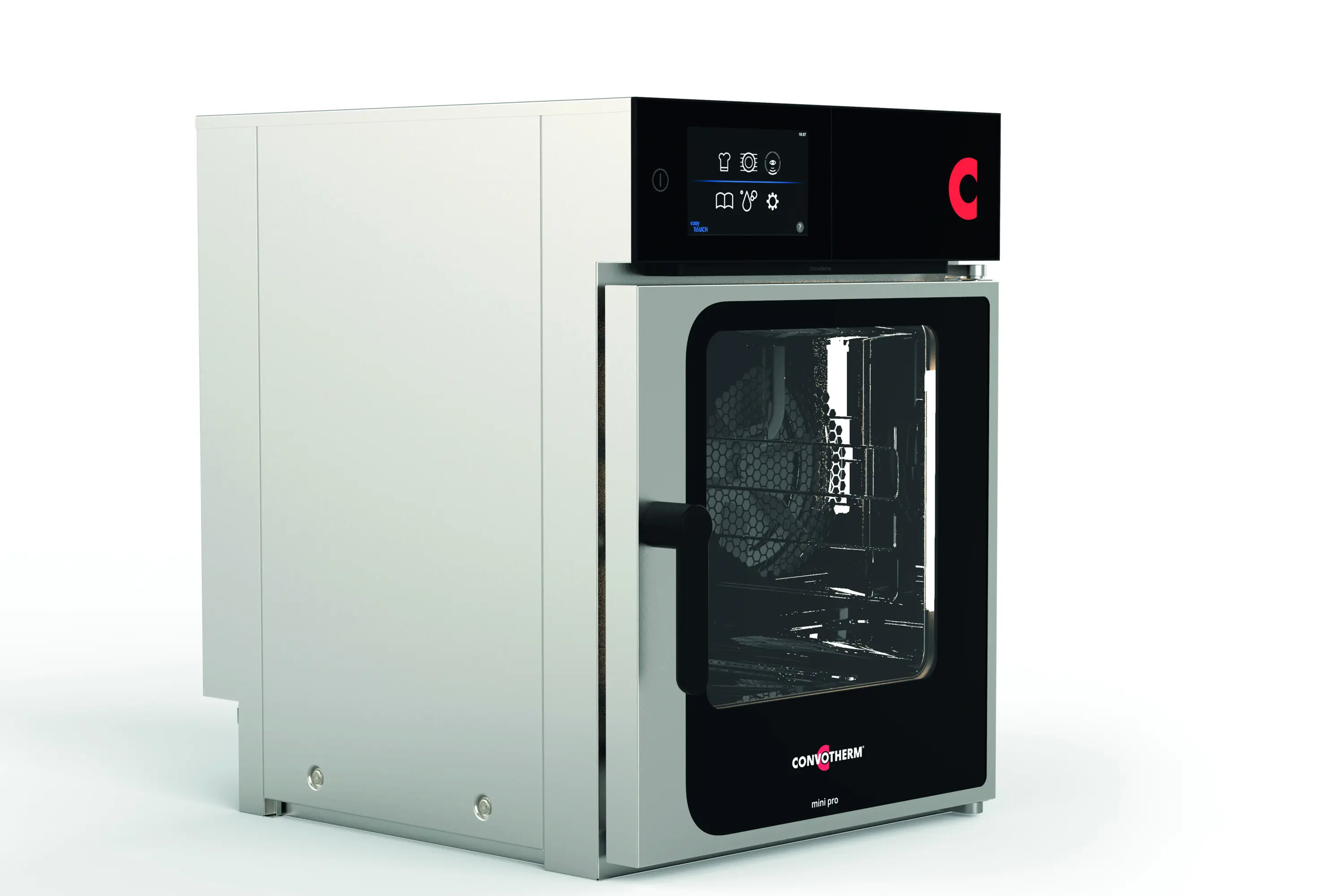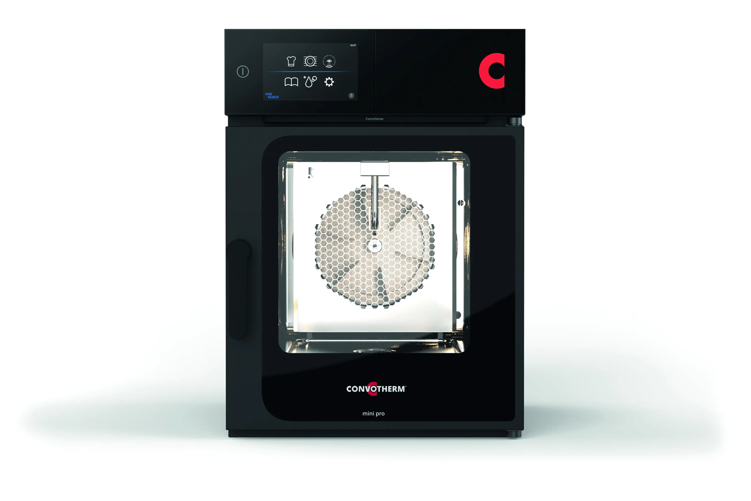 Der Convotherm mini pro ist ein kompakter Kombidämpfer für kleine Gastronomieküchen und Frontcooking. KI-basierte Lebensmittelerkennung und automatische sensorgestützte Kochprozesse ermöglichen einfache Bedienung und reduzieren Lebensmittelverschwendung, auch für ungelerntes Personal. Das schlanke, stapelbare Design spart Platz und verbessert Energie- und Wassereffizienz. Aus hygienischem, langlebigem Edelstahl und Glas in Silber oder Mattschwarz passt er flächenbündig in Standardküchenelemente.