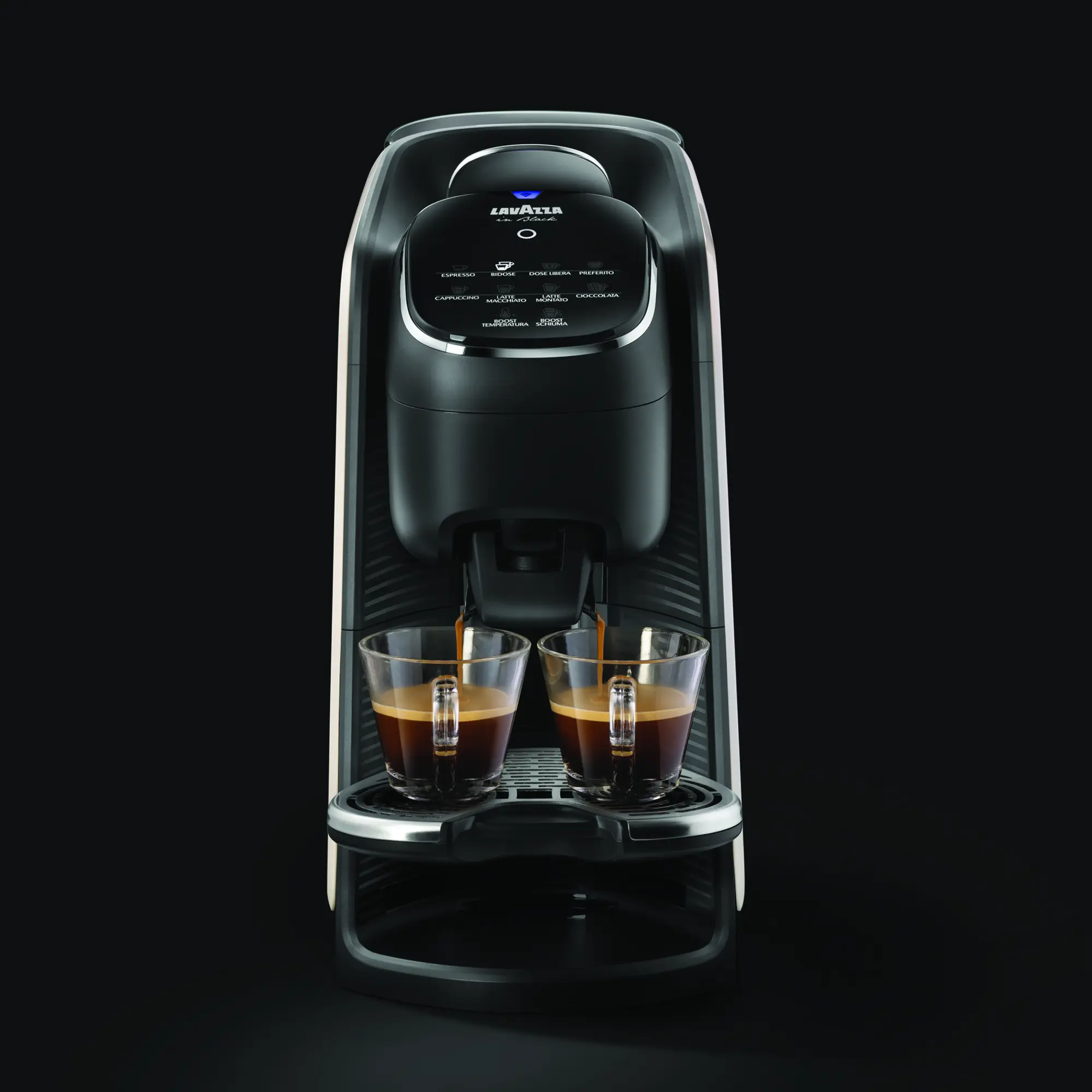 Elogy Barista ist mehr als nur eine Kaffeemaschine: ein kompaktes Getränkesystem. Sie bietet das komplette Paket italienischer Kaffeekultur: von Espresso zu Cappuccino, Latte & heißer Schokolade. Das Design verfügt über einen großen externen Wassertank & ein patentiertes Milchaufschäumsystem. Die Maschine ist einfach zu bedienen, mit spülmaschinenfesten Bauteilen und verstellbarem Tassenhalter. Das Design basiert auf der bestehenden Formensprache von Lavazza. Mit Liebe in Italien entworfen, feiert es seine mediterrane Identität mit Liebe zu Detail, Farbe & Finish. Sorgfältig ausgewählt, um die professionelle Seele des Geräts widerzuspiegeln.