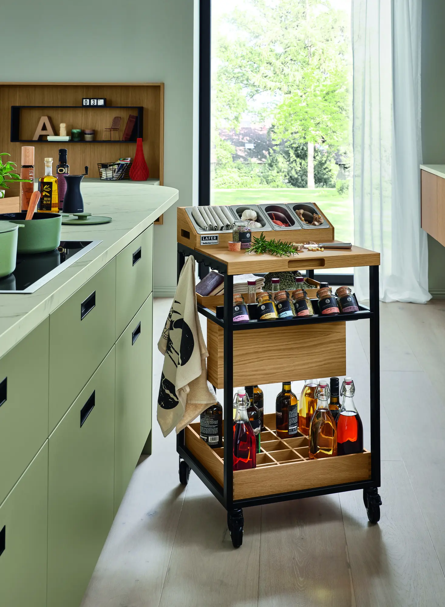 Die perfekte mobile Lösung für jeden – das LAFER FREEMOBILE. Es vereint innovative Funktionalität mit elegantem Design und bietet Ihnen unzählige Möglichkeiten für den Einsatz in jedem Zuhause. Zusammen mit dem Schneidbrett und den Gastrobehältern aus der professionellen Gastroküche erweitert es die Arbeitsfläche - insbesondere in kleinen Küchen. Es bringt mühelos und stilvoll Flaschen, frische Kräuter, Gewürze, Messer und weitere Küchenutensilien direkt an den Esstisch. Es kann auch als Service-Station am Tisch oder beim Grillen genutzt werden.