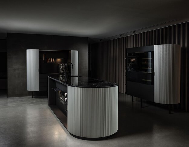 Das modulare »Orea W« Küchenkonzept vereint eine sehr schön proportionierte, zeitlos-elegante Formensprache und edle Materialität mit technischer Präzision in einem sinnlichen Design. Ein besonderes Merkmal ist die Rollfront aus Aluminium, die für ein interessantes Spiel aus Präsentieren und Verbergen sorgt und das Design markant ergänzt.
