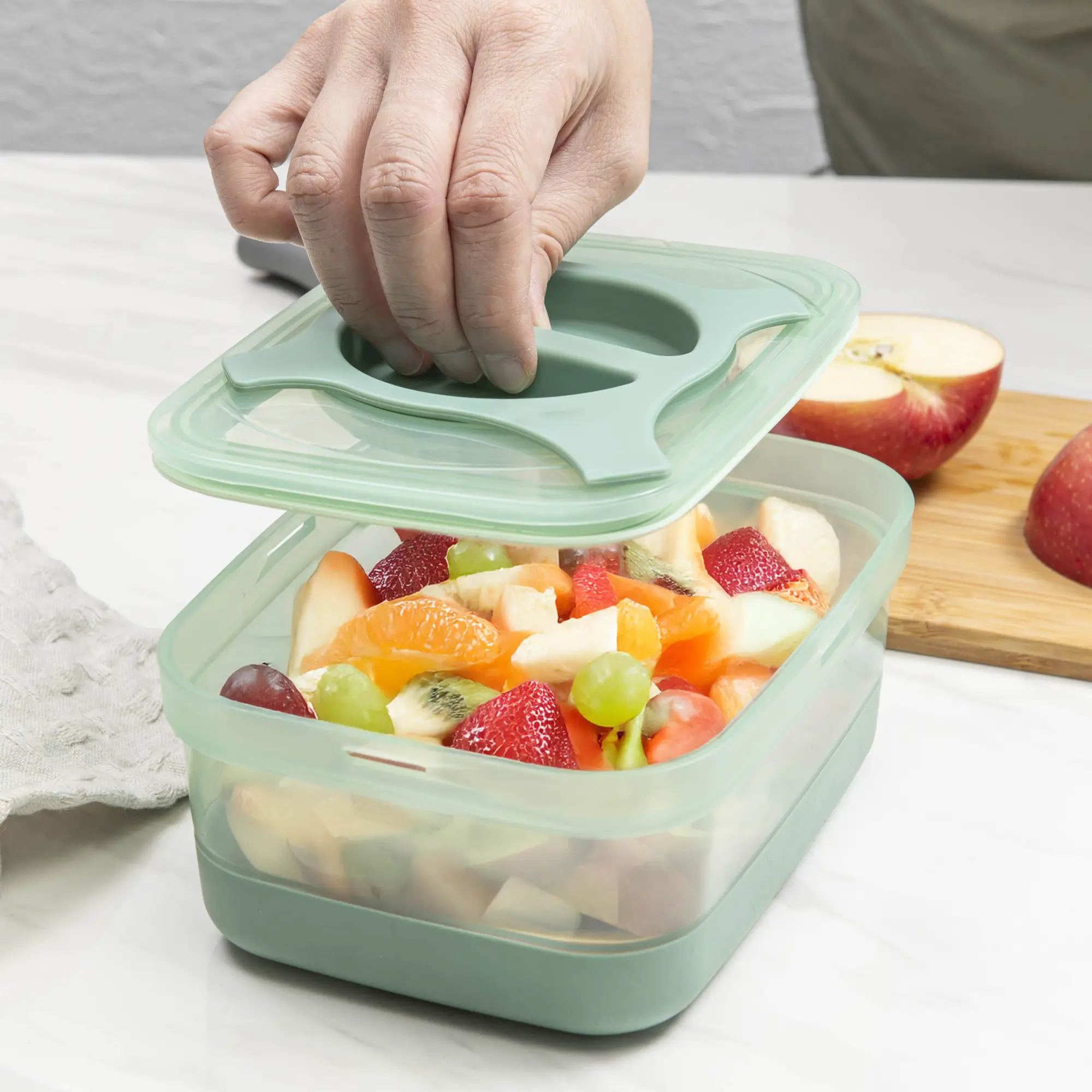 Diese Lunchbox überzeugt mit einem innovativen Drehverschluss und zentraler Stange für einhändiges Öffnen, sicheren Halt und vollständige Zerlegung zur Reinigung. Im Gegensatz zu herkömmlichen Verschlüssen ist sie auslaufsicher, hygienisch und benutzerfreundlich. Die rutschfeste, wärmeisolierte Basis sorgt für Stabilität. Mikrowellengeeignet, gefrierfest und stapelbar – ideal für den modernen Alltag. Ein funktionales Design, das neue Maßstäbe setzt.