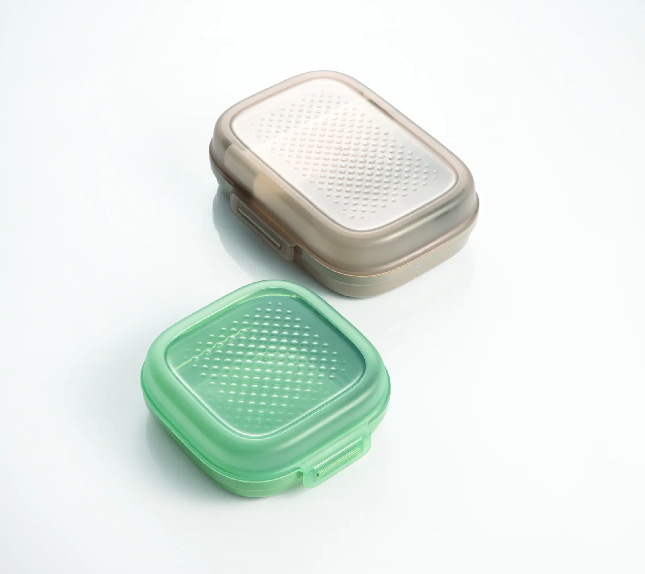 In den Dosen lassen sich Snacks transportieren und komfortabel servieren. Die Sandwich-Dose 4FOOD ist für Snacks aus dem Toastbrot konzipiert, die Snack-Dose 4FOOD mit Trennsteg eignet sich für kombinierte Snacks. Der verstellbare Trennsteg unterteilt das Innere der Dose vertikal oder horizontal in zwei unterschiedlich große Fächer. So bleiben Speisen zuverlässig getrennt. Ober- und Unterschale der Dosen sind durch einen stabilen Verschluss verbunden, der als lösbares Scharnier dient. Die Dosen lassen sich leicht öffnen, trennen und separat verwenden. Alle Schalen sind hervorragend stapelbar.