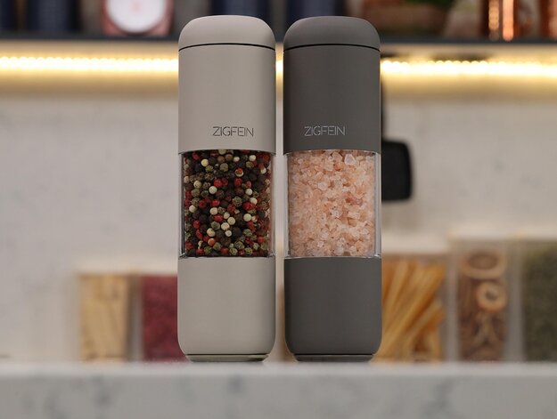 Das ZIGFEIN Salz- und Pfeffermühlenset vereint modernes Design mit praktischer Funktionalität. Hergestellt aus BPA-freien, langlebigen Materialien und verpackt in 100 % recycelbarem Material, bietet es einen manuellen Mahlmechanismus und ein ergonomisches Design für eine komfortable Nutzung. Das Keramikmahlwerk sorgt für Präzision, während der große Behälter mit einem Fassungsvermögen von 190-200 ml selteneres Nachfüllen ermöglicht. Mit der integrierten Krümelschutzkappe bleiben Oberflächen sauber. ZIGFEIN steht für Nachhaltigkeit und Qualität.