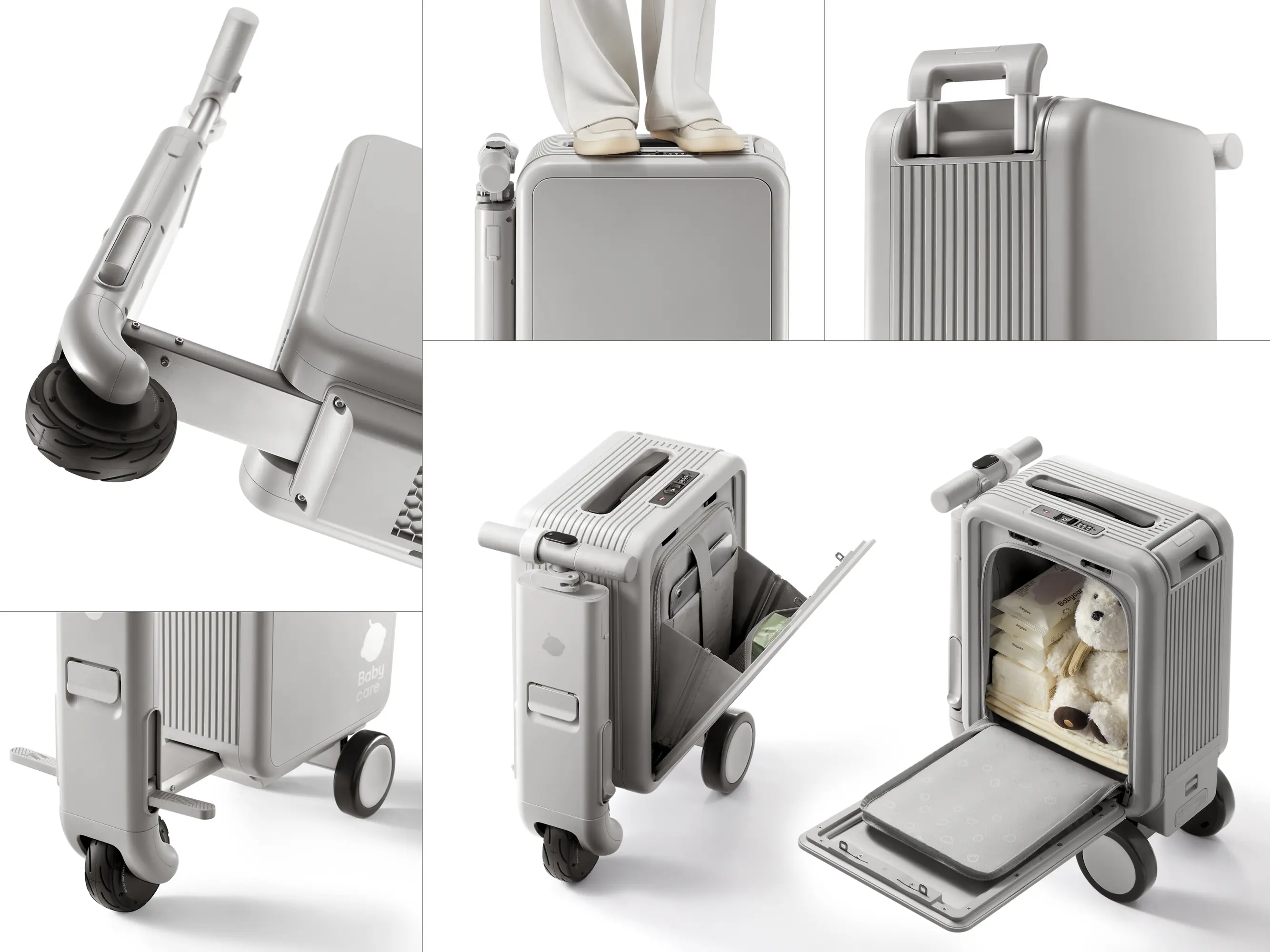 Schweres Gepäck auf Reisen wird zum Kinderspiel: der elektrische „EcoMove“ lässt Eltern entspannt fahren und Kinder mitnehmen. 20 Zoll Handgepäck-Format, 93 % recyceltes Polycarbonat/Aluminium. Reichweite +80 %, über 20 km – neuer Komfort- und Nachhaltigkeitsstandard.