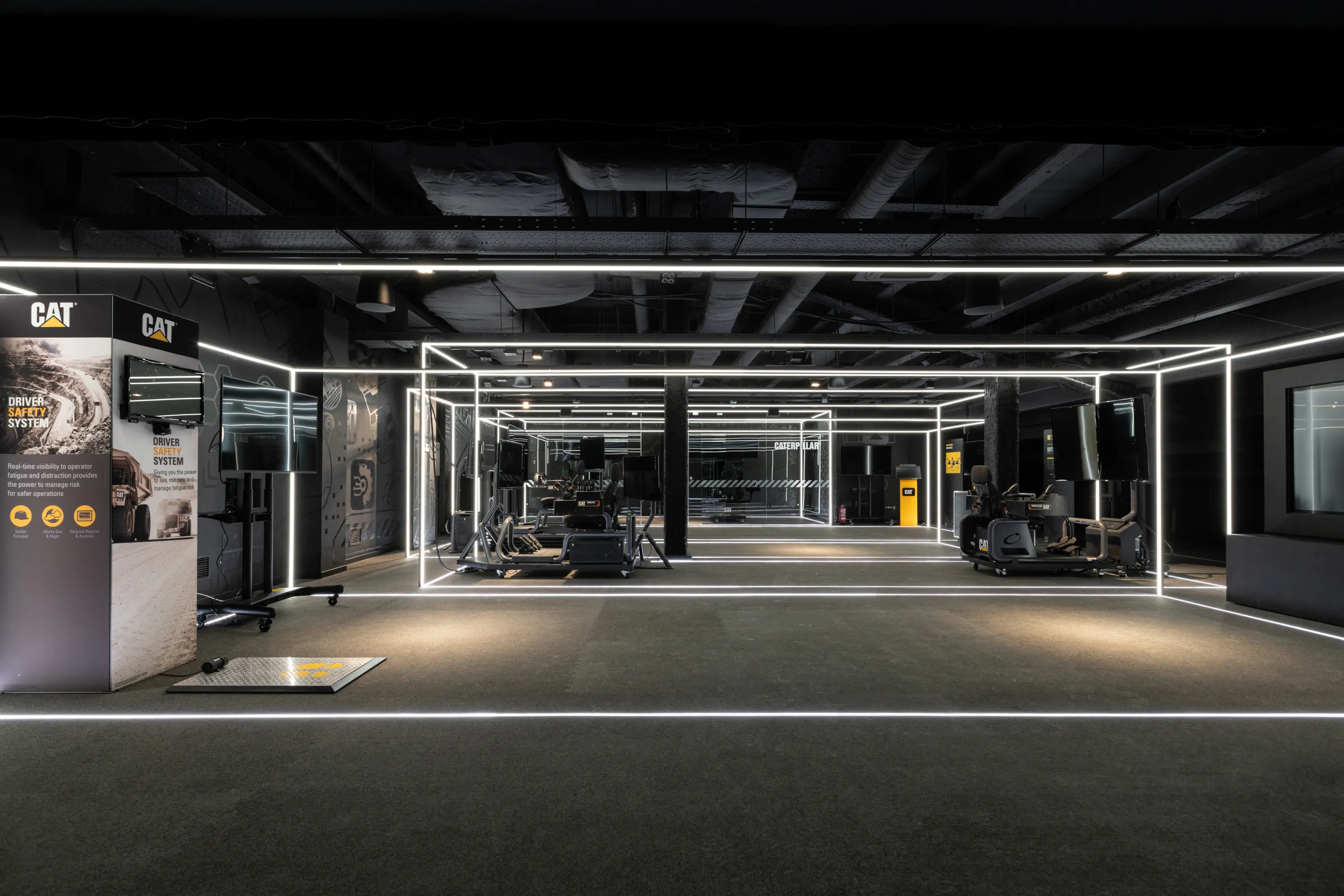 Caterpillar, ein führender Hersteller von Baumaschinen, hebt das Benutzererlebnis auf die nächste Stufe und schafft einen neuen Technologie-Showroom. Der Raum dient als Schulungs- und Vorführbereich und verfügt über Simulatoren und Fernbedienungen, mit denen die Maschinen in Echtzeit gesteuert werden können. Das Ziel war es, einen innovativen, flexiblen und wandlungsfähigen Raum zu schaffen. Licht spielt dabei eine entscheidende Rolle, da es den Raum verwandelt und für den Wow-Effekt des Projekts sorgt. Die Lichtshow reicht von der Darstellung photolumineszenter Unternehmensgraffitis bis hin zu einer Vision aus sorgfältig gefertigten Drahtprismen, die die Technologie von Caterpillar hervorheben. Der Raum verbindet eine futuristische mit einer Grunge-Ästhetik.