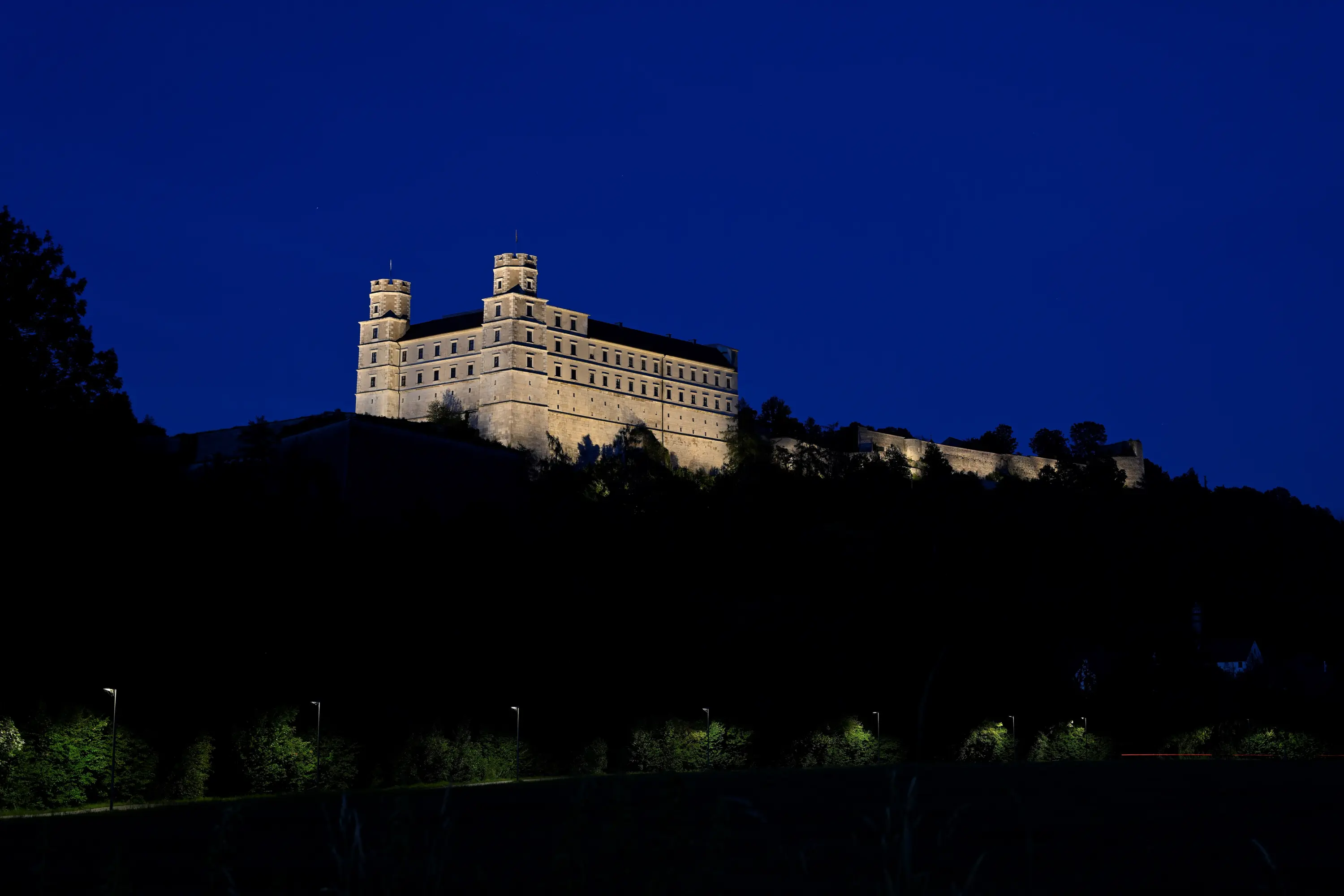 Die Willibaldsburg in Eichstätt, ein historisches Juwel aus dem 14. Jahrhundert, erstrahlt in neuem Licht. Mit der innovativen Außenbeleuchtung wird die Burg nicht nur in ihrer architektonischen Pracht hervorgehoben, sondern auch in ihrer historischen Bedeutung gewürdigt. Die Beleuchtung verbindet modernste Lichttechnik mit einem tiefen Respekt für die Geschichte und Ästhetik des Bauwerks, betont die markanten Türme, die mächtigen Mauern und die filigranen Details der Fassaden, wodurch ein harmonisches Zusammenspiel von Licht und Schatten entsteht. Neben der Fassadenbeleuchtung erscheint nun auch der Innenhof in neuem Glanz.