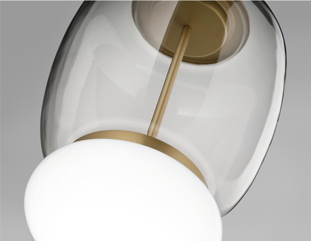 Faro besteht aus zwei Gläsern, die durch einen Metallring harmonisch miteinander verbunden sind. Das erste Glas, mit einer transparenten farbigen Oberfläche, scheint mit dem zweiten weißen Glas verbunden zu sein, das die LED-Quelle verbirgt. Das Licht ist diffus, gleichmäßig und nicht blendend. Erhältlich in zwei Größen, sowohl als Pendel- als auch als Deckenleuchte.