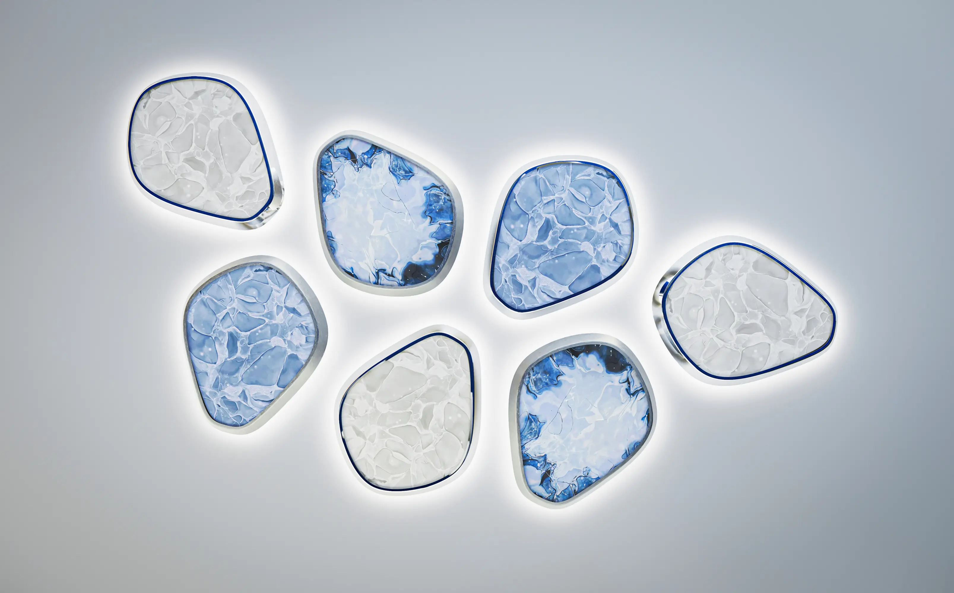 Ishi ist eine aufgesetzte Leuchte, inspiriert von der Form eines Flusssteins. Der untere Diffusor besteht aus Brokisglass – einem Glasmaterial, das aus Scherben hergestellt wird. Der obere Diffusor besteht aus recyceltem Kunststoff „Minus“ von PlasticGuys. Alles wird von einem Metallrahmen getragen, der Stabilität gewährleistet. Ishi ist ein Manifest nachhaltigen Luxus. Seine größte Stärke liegt in der Möglichkeit, einzelne Stücke zu endlosen Kompositionen zu kombinieren – ähnlich wie Flusssteine, die ein natürliches Ganzes bilden. Die Leuchte wird in zwei Größen produziert, und aus demselben Metallrahmen entsteht auch eine Spiegelkollektion.