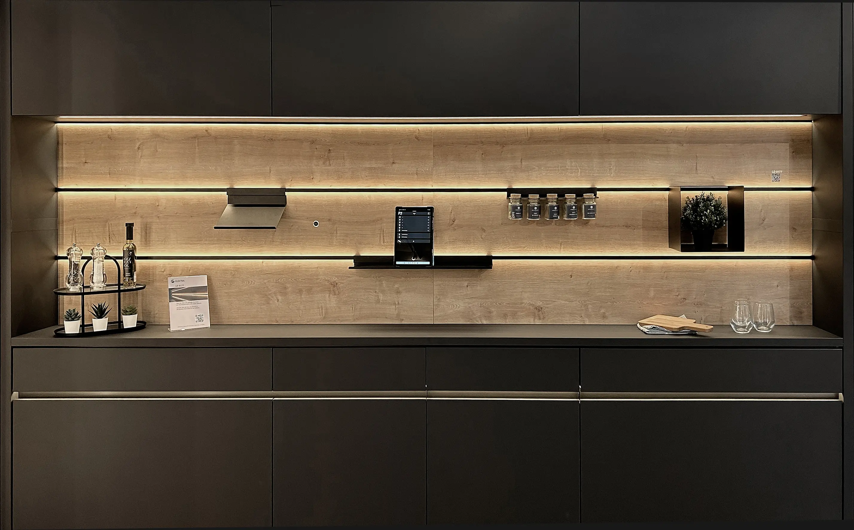 Das Designkonzept fügt sich optisch in alle gängigen Möbelraster ein. Gleichzeitig sorgt ein Streifen aus kleinen, eng aneinander liegenden LEDs für eine homogene, indirekte und blendfreie Beleuchtung. Verschiedene Ausführungen erzeugen ein stimmungsvolles Ambiente, das das Licht wahlweise nach oben, unten oder nach hinten abstrahlt. Das Besondere an diesem äußerst filigranen Lichtsystem ist, dass der Kunde problemlos zusätzliche Elemente wie Ablagen oder Halterungen hinzufügen kann. Der Fokus liegt bei diesem neuen Produkt auf einer einfachen Montage, die den Installationsaufwand für den Kunden gering hält.