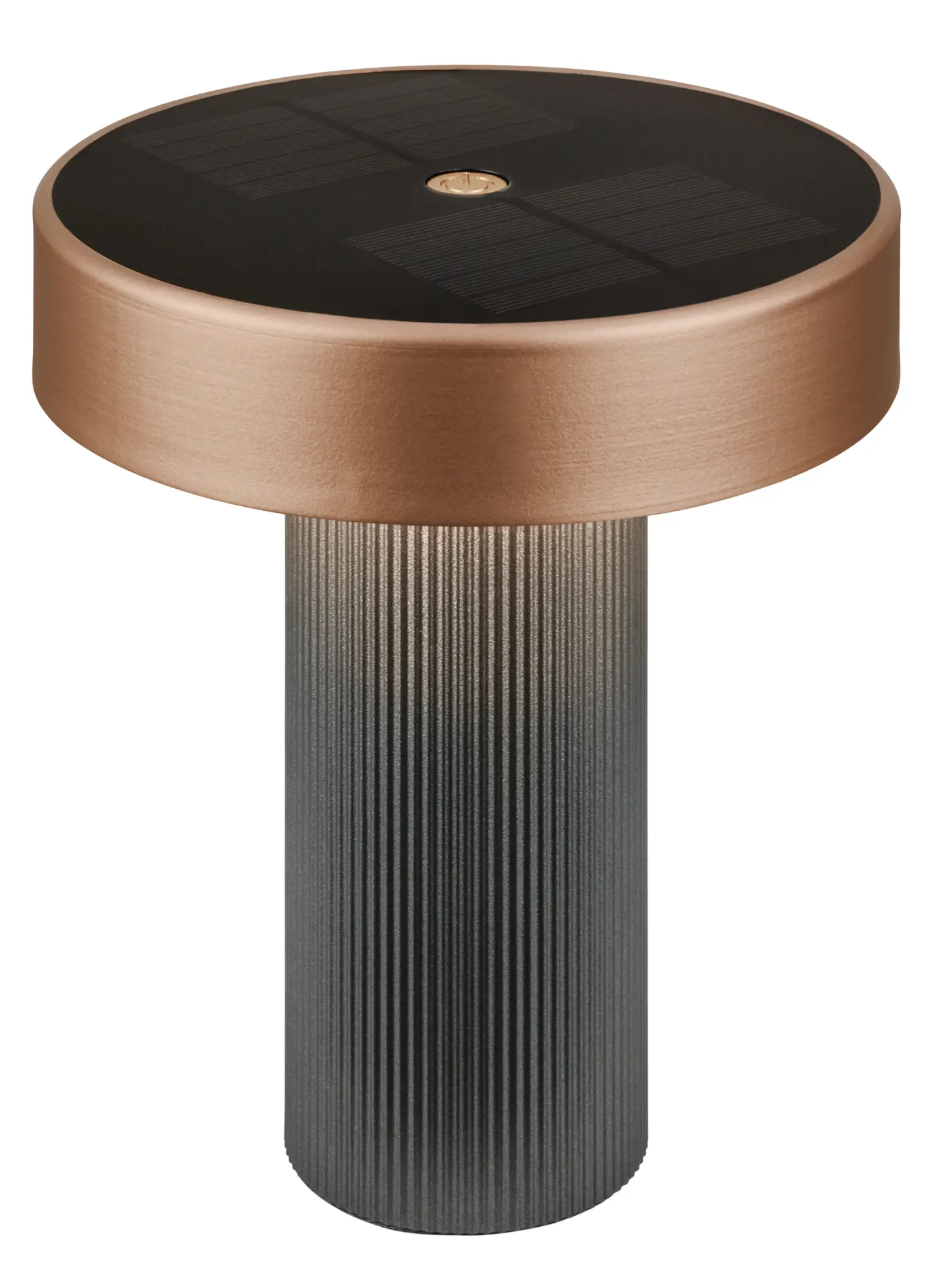 Poga ist die Symbiose aus puristischem Design und nachhaltiger Energie. Ein edles Solarpanel fügt sich nahtlos in das Gehäuse ein und macht sie zur idealen Begleiterin im Außenbereich. Die klare Formgebung und der elegant geriffelte Fuß schaffen ein faszinierendes Spiel aus Licht und Struktur. Warmweißes Licht, dimmbar nach Wunsch, sorgt für stimmungsvolle Abende im Freien. Zugleich überzeugt Poga durch modernste Technik: USB-C-Anschluss, austauschbarer Akku und Tiefenentladungsschalter garantieren Zukunftssicherheit und erfüllen schon heute die EU-Anforderungen von 2027. Poga – formvollendetes Design, das die Kraft der Sonne einfängt.