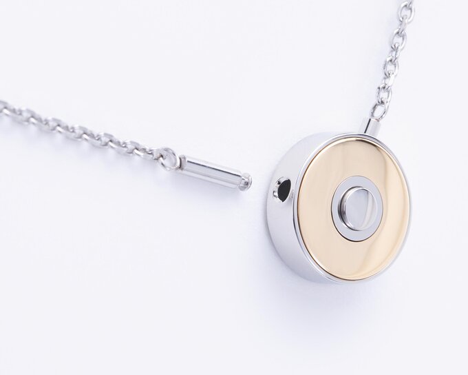 Die Halskette »The secret pendant« überzeugt durch einen innovativen Verschlussmechanismus, der die Handhabung erheblich erleichtert und dabei funktional wie ästhetisch ansprechend ist. Diese Verbindung von praktischer Anwendung und elegantem Design hebt das Schmuckstück in der Kategorie Luxusgüter hervor.