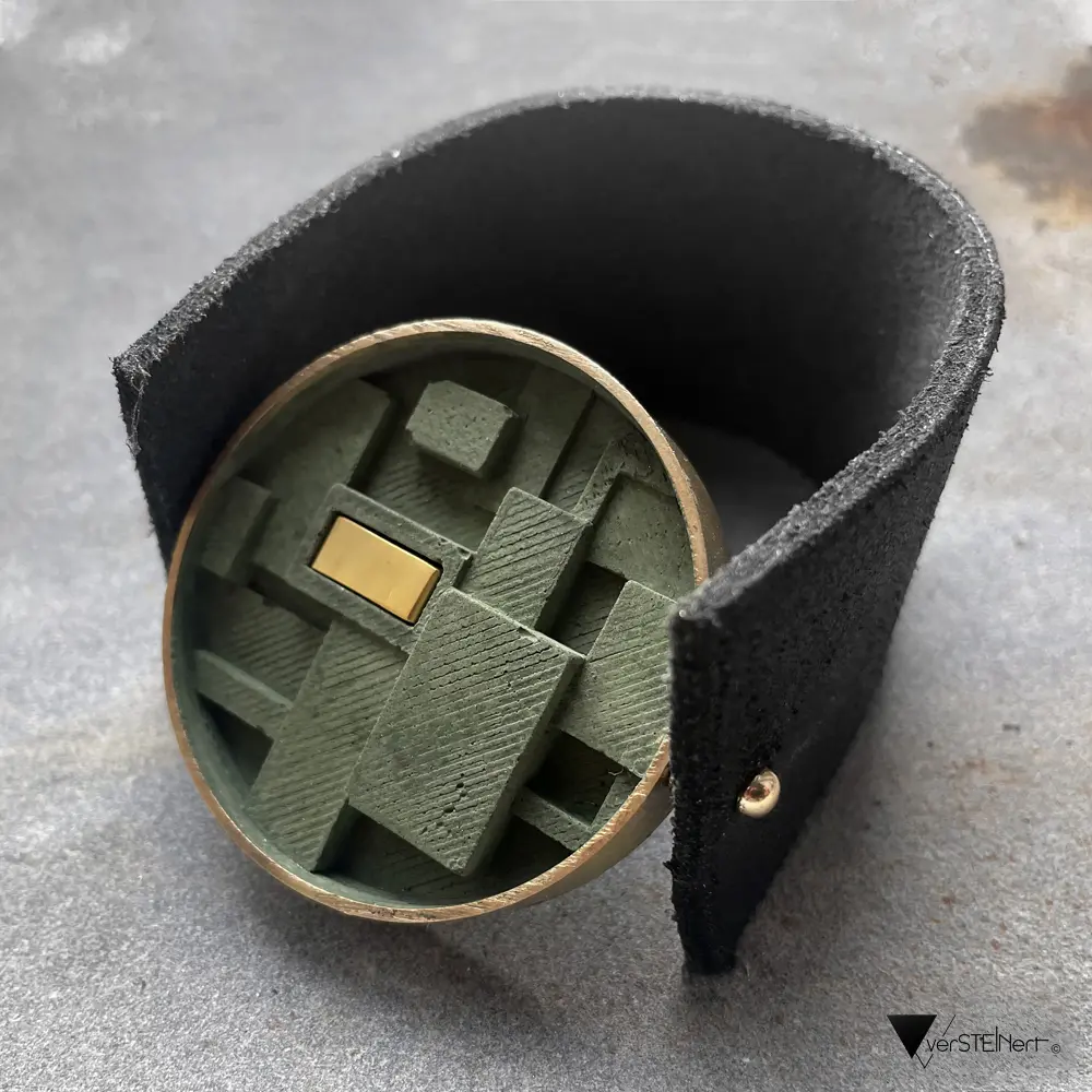 Architektur zum Tragen. verSTEINert definiert sich als Matrix aus Architektur und Produktdesign. Beton, als überdauerndes Grundelement, wird mit urbanen Einflüssen zu einem einzigartigen Produkt vereint. Inspiriert von städtebaulichen Strukturen entstehen geometrische Kompositionen, die an Grundrisse, Straßennetze und urbane Silhouetten erinnern - ein abstrahiertes Stück Stadt. Gefertigt aus recyceltem Beton entsteht ein nachhaltiges Design, das Beständigkeit und Modernität verbindet – zudem ist es wandelbar und eröffnet vielfältige Möglichkeiten des Tragens und Kombinierens.