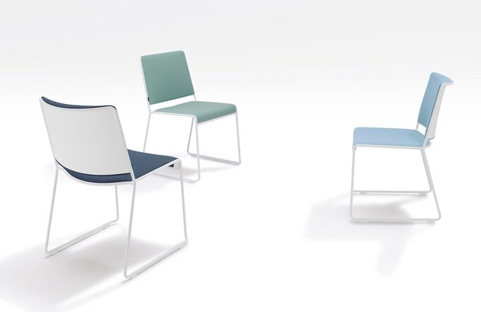 Der Gene-Stapelstuhl legt den Schwerpunkt auf Komfort und Designvielfalt für verschiedene Inneneinrichtungen. Ein innerer Sitzkern mit sich ausdehnenden, perforierten Schlitzen ermöglicht ein bequemes Sitzen. Das Design der Rückenlippe sorgt für eine einfache Handhabung und eine angenehme Armlehne beim seitlichen Sitzen. Die schlanke Rahmenkonstruktion bietet eine kompakte Aufbewahrungslösung, die 40 Stück auf einem Rollwagen stapeln kann. Alle Harzkomponenten bestehen aus 100 % recycelten Materialien. Diese nachhaltige Designlösung bringt moderne Raffinesse und Umweltbewusstsein in den Vordergrund des gewerblichen Möbeldesigns.