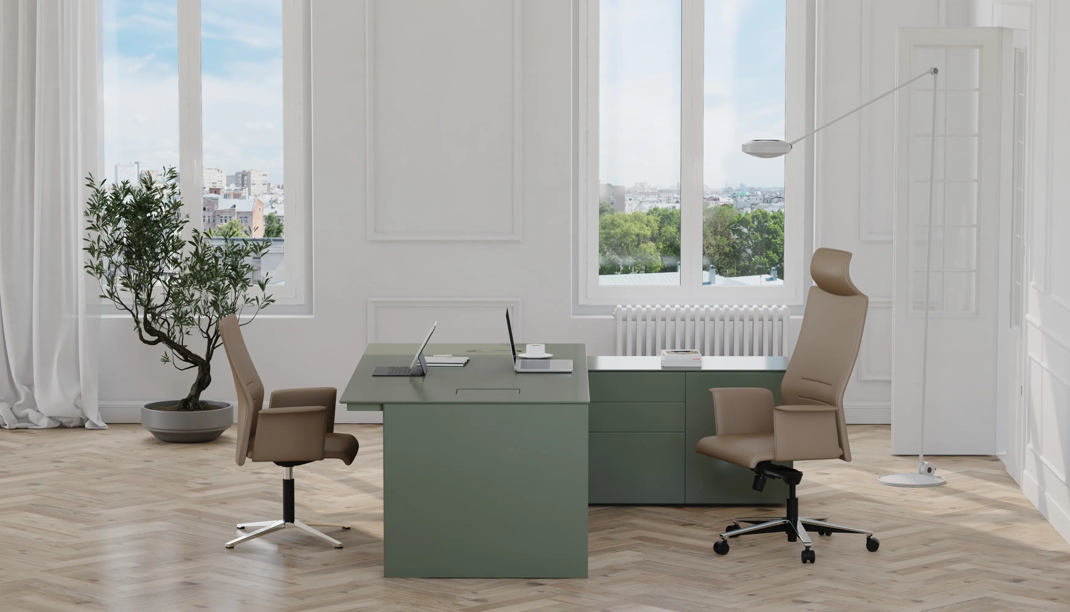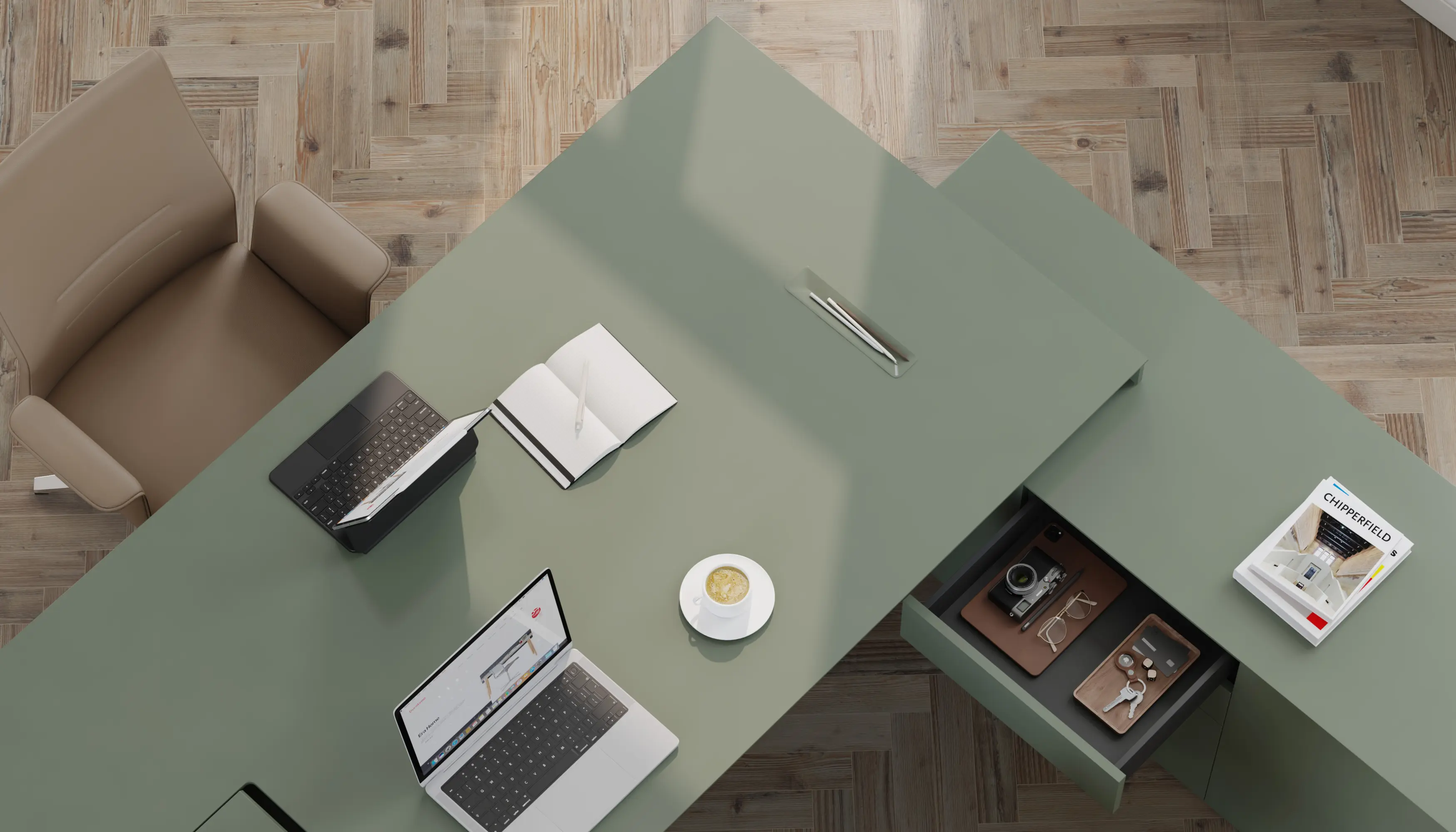 Inspiriert vom Bauhaus passt sich JUST mit seiner minimalistischen Form und modularen Struktur verschiedenen Büroszenarien an. Ein spezielles Verbindungssystem ermöglicht schnellen Aufbau und Standortwechsel. Die große Arbeitsfläche, das integrierte Kabelmanagement und der versteckte Stauraum schaffen einen organisierten, effizienten und langlebigen Arbeitsplatz.