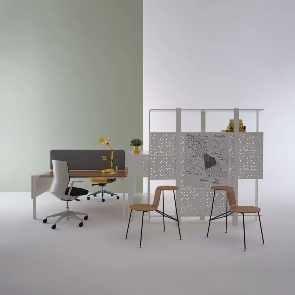 Threshold ist eine Schreibtisch- und Aufbewahrungslösung, die als Arbeitsplatz konzipiert ist. Freistehende Einheiten bilden ein offenes, flexibles System, das sich ohne Werkzeug leicht erstellen, austauschen und neu konfigurieren lässt und zugleich die Reinigung unter Schränken erleichtert. Als in sich geschlossene Elemente lassen sie maximales Licht in den Arbeitsbereich und gewährleisten optimale Luftzirkulation. Das Konzept definiert den Arbeitsplatz neu und ermöglicht individuelle Umgebungen mit durchscheinenden, einfach zu montierenden und zu reinigenden Einheiten.