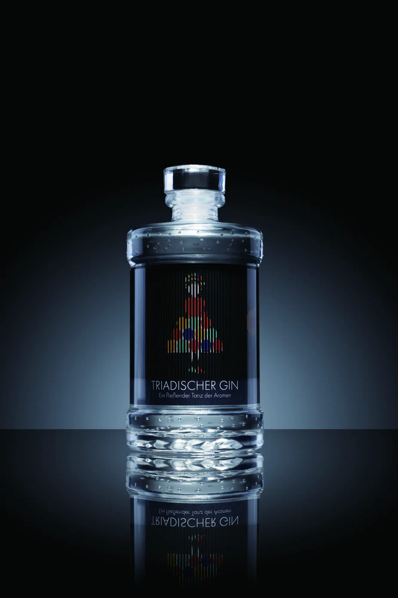 TRIADISCHER GIN wurde für die Wiegand Manufactur Weimar entwickelt und spricht eine junge Generation an, die zwischen Struktur und Spontaneität lebt. Als Inszenierung, inspiriert vom Triadischen Ballett Oskar Schlemmers und den Prinzipien des Bauhauses, wird Trinken zur Choreografie, zu einem Moment der Konzentration, Bewegung und Reflexion. Ein lentikulares Etikett lässt Figuren beim Drehen der Flasche tanzen und Futura PT Light prägt die Typografie. So wird die Flasche zur Bühne und TRIADISCHER GIN zu einem eleganten, spielerischen Erlebnis, das das Bauhauserbe zeitgenössisch interpretiert.
