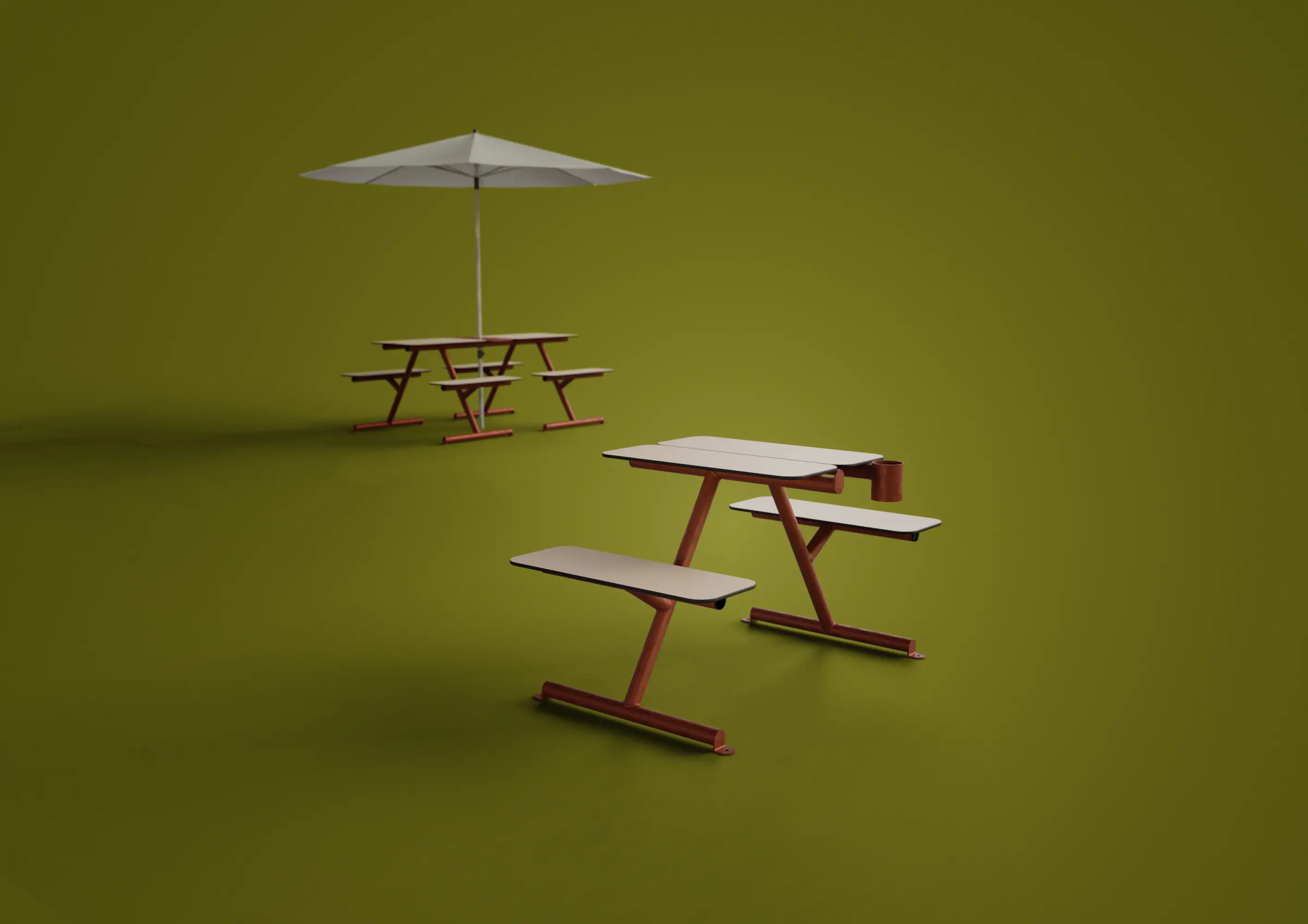Wie der Name bereits vermuten lässt, ist diese Tisch-Bank-Kombi ursprünglich für vier Personen konzipiert. Entscheidend ist jedoch, dass mehrere Tische miteinander verbunden werden können. Wir bieten verschiedene Add-ons an, die an den Tischen angebracht werden können. Es gibt Getränkehalter, Schirmständer, USB- Ladestationen oder Haken für Taschen und Jacken. Die Möbelserie ist in einer hohen und einer niedrigen Version erhältlich. Die niedrige Version ist an beiden Tischenden barrierefrei zugänglich. Das Möbel besteht aus HPL Platten und feuerverzinktem, pulverbeschichtetem Stahl. Alle Einzelteile können im Schadensfall ausgetauscht werden.