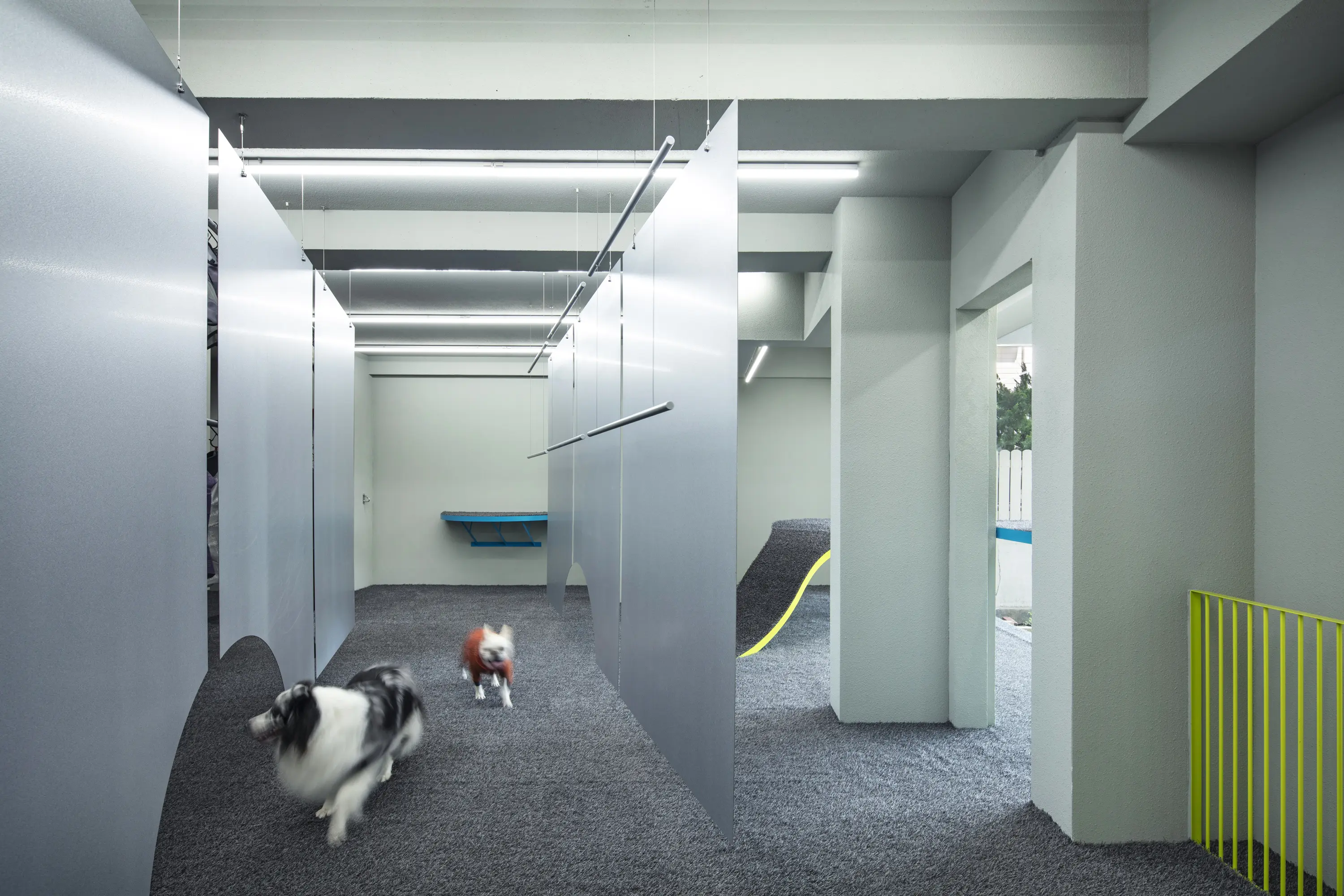Der Tokioter Store der Hundebekleidungsmarke ALPHAICON betrachtet Hunde, nicht Menschen, als seine Kunden und minimiert so die körperliche und psychische Belastung der Kunden beim Einkaufen. Hundefreundliche Wand- und Bodenbeläge sorgen für ein Gefühl von Sicherheit und Komfort, während die Einrichtung, die an einen Hundepark erinnert, Langeweile vorbeugt. Die Farbpalette basiert auf wissenschaftlichen Untersuchungen, die zeigen, dass Hundeaugen in einer grauen Welt Gelb und Blau unterscheiden können. Sie ist eine räumliche Umsetzung der Markenphilosophie „Gegenseitiges Verständnis zwischen Hund und Halter durch Produkte“.