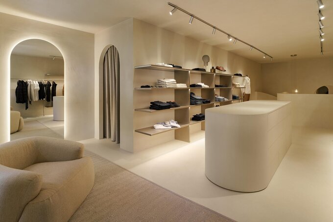 Die Gestaltung des »FLAIR« Bekleidungsgeschäfts beeindruckt durch die Verbindung von fließender Eleganz und historischer Architektur. Ein schönes Element ist die skulpturale Treppe, die als zentrales Element das räumliche Erlebnis zwischen den Etagen dynamisch inszeniert und den exklusiven Charakter des Shops unterstreicht.