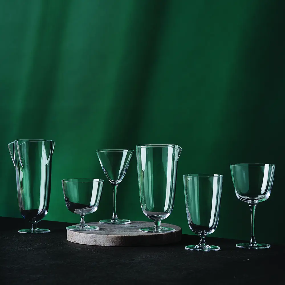 In Zusammenarbeit mit dem renommierten Mixologen Giorgio Bargiani vereint die Bar/Giani-Kollektion Eleganz mit spielerischer Raffinesse. Inspiriert von The Great Gatsby, italienischen Aperitifs und der Tiki-Kultur wurde jedes Glas aus feinem Kristall speziell für verschiedene Cocktails gestaltet. Der markante Stiel reduziert Fingerabdrücke und hält Drinks kühl. Stapelbar für effiziente Nutzung in Bars. Die Serie umfasst ein geschwungenes Martini-, hohes Highball-, robustes Old Fashioned-, breites Spritzglas sowie einen ergonomischen Rührkrug – plus eine Version mit zwei Ausgüssen für schnelle Zubereitung.