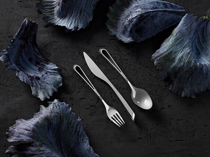 Die neue Kollektion vom Besteckspezialisten HEPP besticht in erster Linie durch das außergewöhnliche, disruptive Design. Dabei verfügt der Besteckgriff über eine Aussparung, die zum Besteckvorderteil hin in einem dynamischen Radius ausläuft und CUTTING EDGE zu einem einzigartigen Hingucker werden lässt. Die abgerundeten Kanten machen das Besteck trotz des anspruchsvollen Designs ausgesprochen handlich. Das stehende Messer, sowie die bewusst reduziert gehaltenen Laffe- und Zinkenoptik, runden dieses beispiellose Stück Handwerkskunst ab und zelebrieren mehr denn je den Claim „HEPP – The Art of Service“.