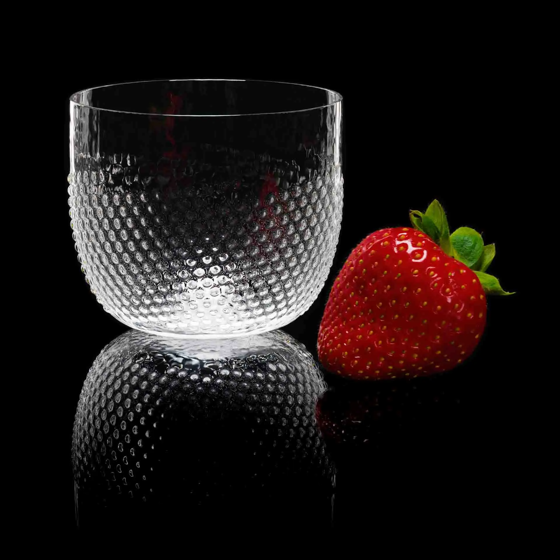 ICHIGO.Coupette No. 1 Champagne aus mundgeblasenem, bleifreiem Kristallglas ist kostbar, inspirierend und von funktionaler Raffinesse geprägt. Jedes Stück ist ein Unikat, in Metallformen von Meisterhand in Tschechien geblasen. Inspiriert von der Erdbeere, entworfen für besondere Momente: Das charakteristische Noppen-Design verhindert Fingerabdrücke, vereint Naturverbundenheit mit europäisch-fernöstlicher Ästhetik und bietet bequeme Eleganz – ohne Stiel, spülmaschinengeeignet. Hochwertige Gläser, schlichte Eleganz, zeitloses Design, echte Handwerkskunst. ICHIGO.Coupette No. 1 Champagne (125 ml) – für Champagner und Schaumweine.