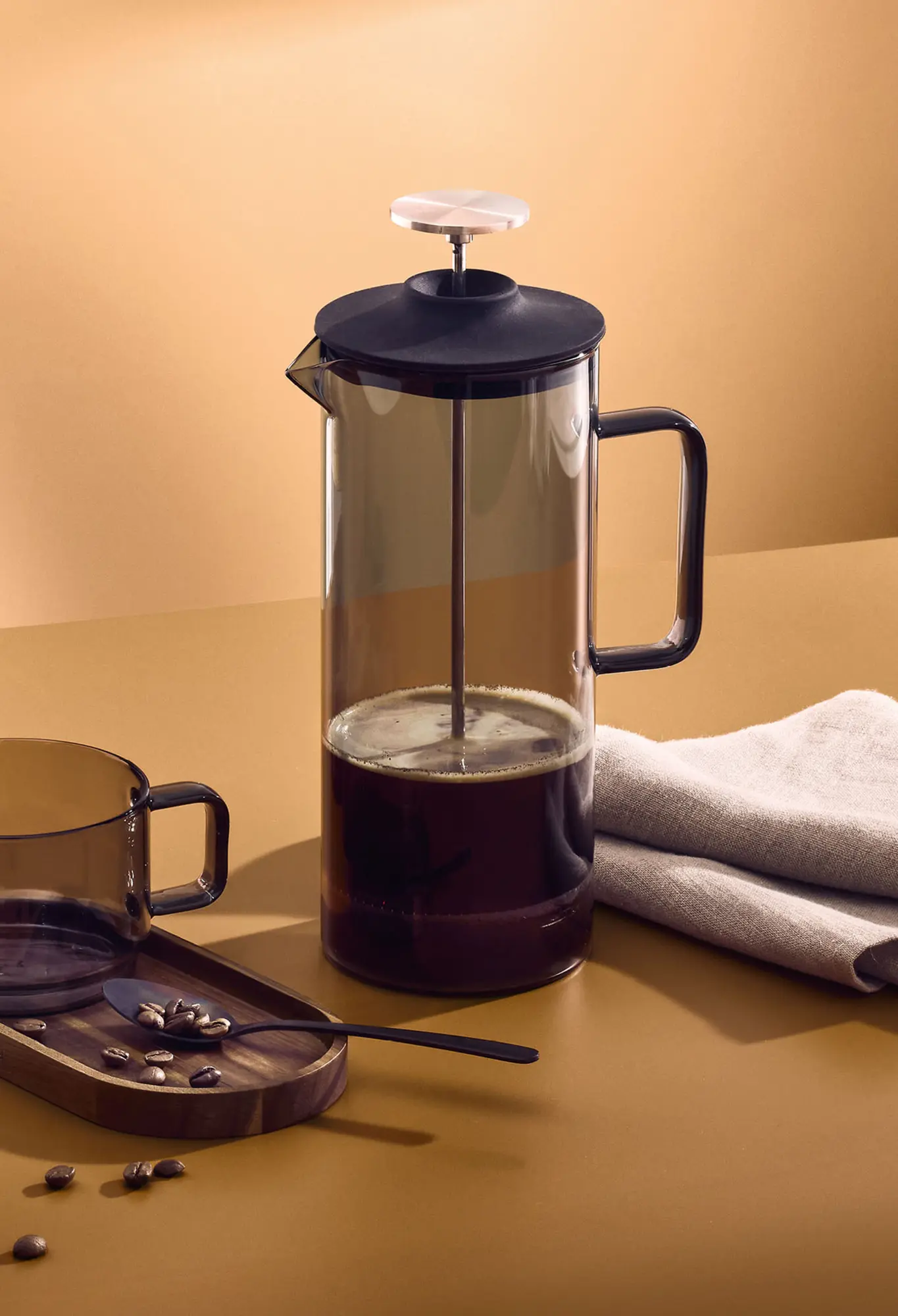 Mehr Geschmack. Mehr Genuss. Mehr unverfälschtes Aroma. Mit dem French Press Kaffeebereiter Impact wird vollmundiger Kaffeegenuss so einfach wie noch nie. Gefertigt aus mundgeblasenem Borosilikatglas – geschaffen für Kaffeeenthusiasten, die die traditionelle French-Press-Methode für sich entdeckt haben. Dank seines hochwertigen Edelstahlfilters mit optimierter Filterstruktur behält der Kaffee sein volles Aroma – und sorgt für einen geschmackvollen Start in den Tag. Der Kaffeebereiter für Kenner: die French Press von AdHoc.