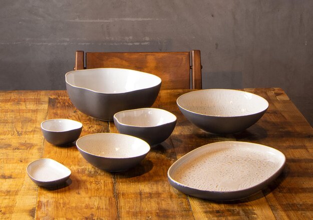 Kaze bedeutet auf Japanisch "der Wind". Es handelt sich um eine Servierkollektion, die ein raffiniertes weißes, umweltfreundliches Digitaldruckdesign, das ein spektakuläres natürliches Muster erzeugt, mit einer matten Außenglasur als Kontrast kombiniert. Wie der Wind verändert sich das Muster ständig auf jedem Stück. Kaze wurde für das stilvolle Servieren sowohl in der orientalischen als auch in der westlichen Küche entwickelt und ist die ideale Wahl für den Küchenchef. Auch diese Kollektion ist durch den Formenmix charaktervoll und schafft einzigartige Kontraste.
