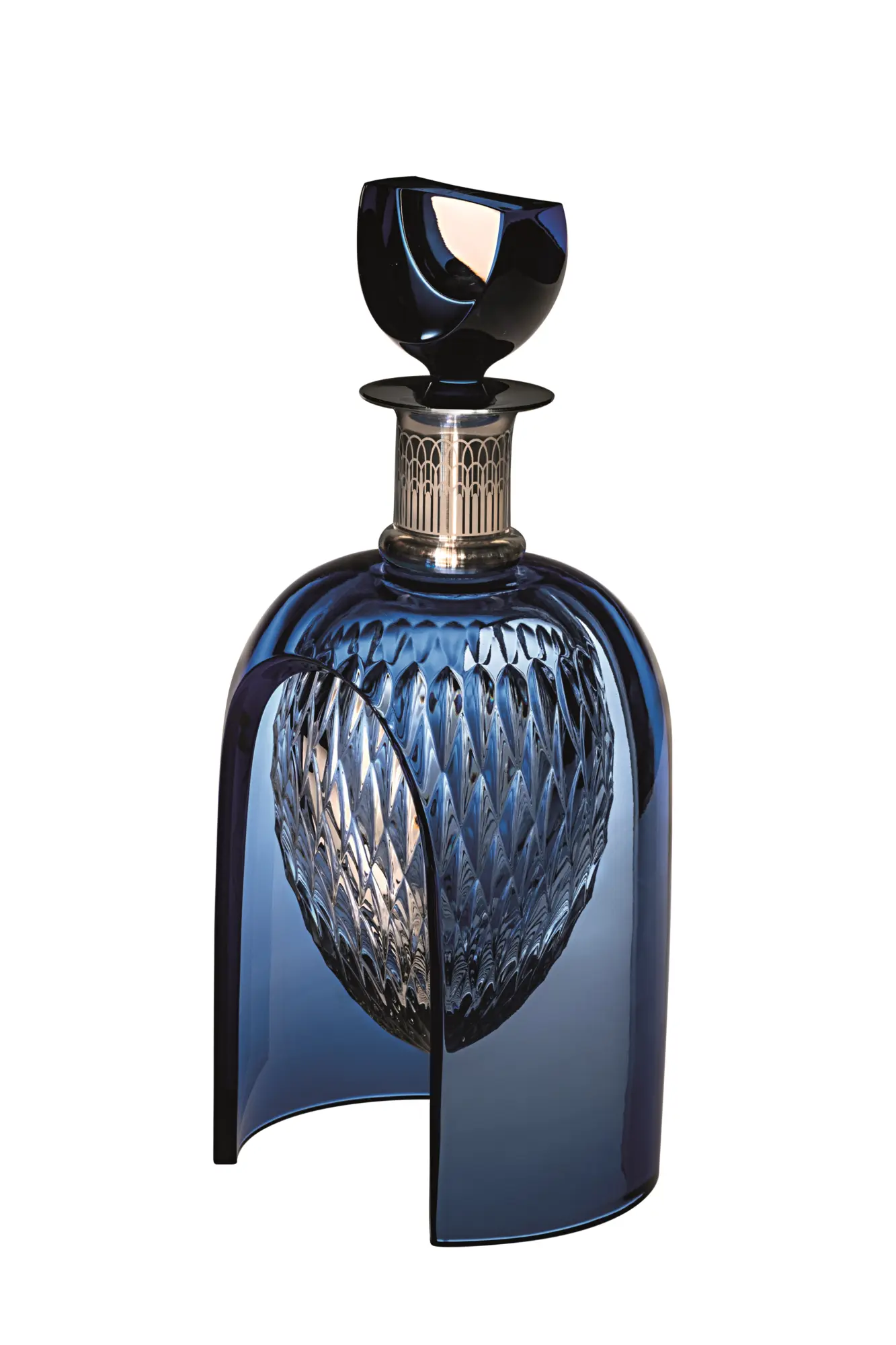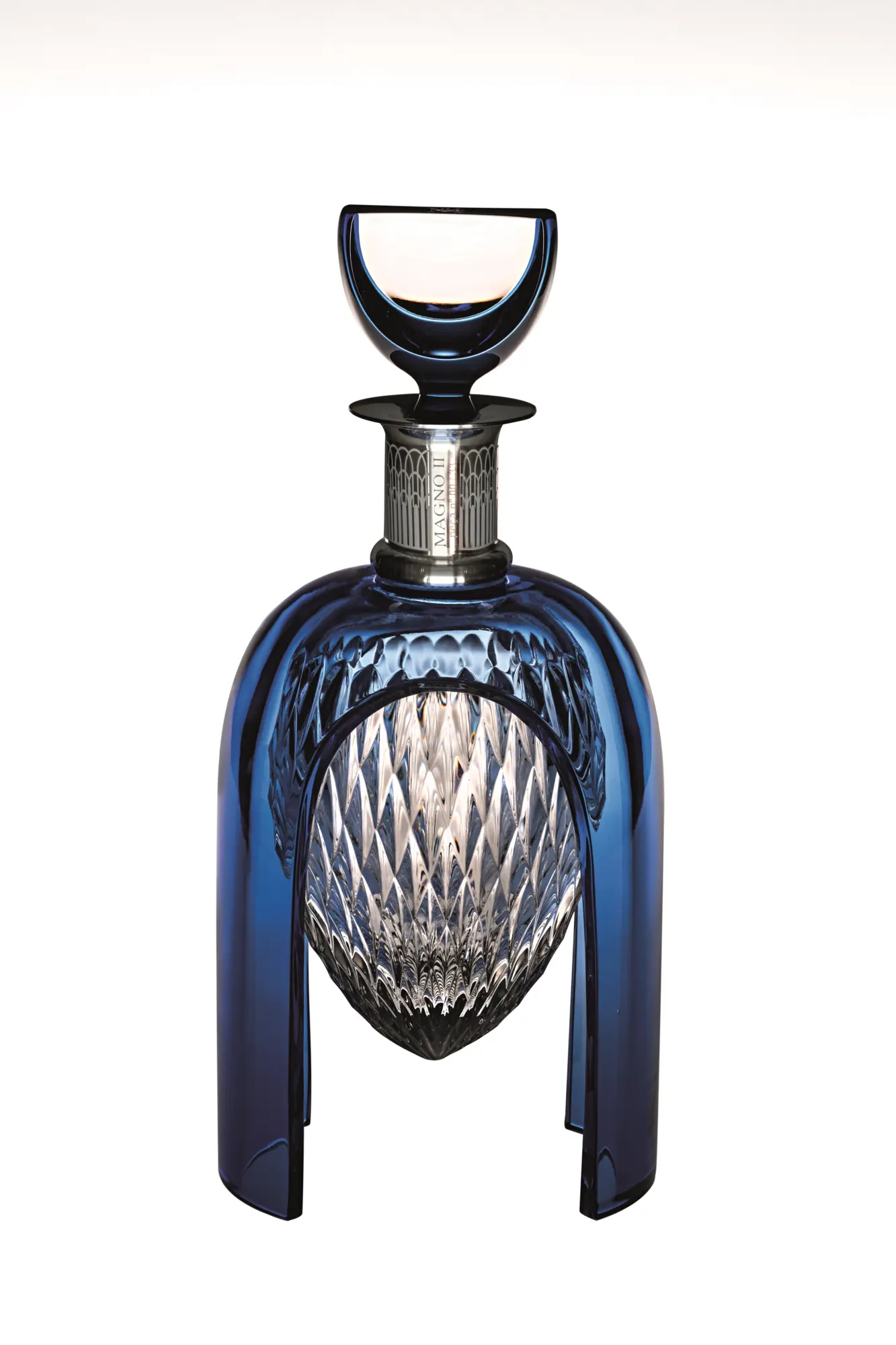 Magno I findet einen würdigen Nachfolger seiner königlichen Linie. Magnus II zeichnet sich durch noch komplexere technische und künstlerische Arbeit aus. Der transparente Kristall wird mithilfe der alten Technik des Überfangglases mit Farbschichten versehen. Bei dieser Flasche ist die Handwerkskunst noch detailreicher, nicht nur im kaiserlich blauen Mantel, der den gemeißelten Körper des Kristalls freigibt, sondern auch in der Symmetrie der Schliffe der verschiedenen Komponenten, einschließlich des majestätischen Verschlusses. Eine zeitlose Skulptur aus reinem Kristall, limitiert auf 33 Exemplare.