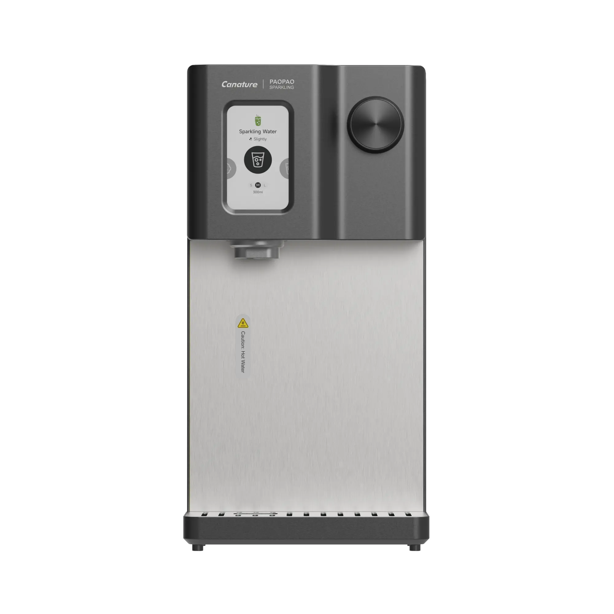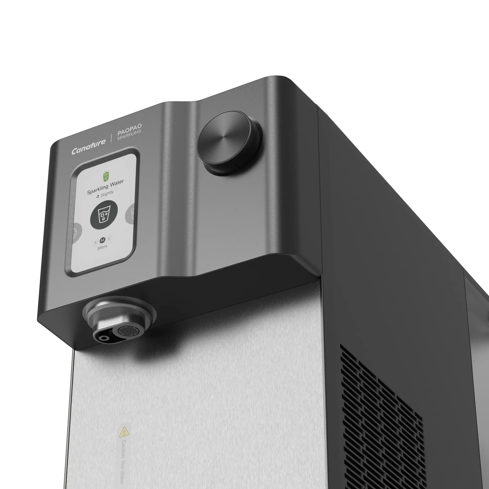 Paopao Knob ist ein multifunktionaler All-in-One-Wasserspender, der auf Wunsch Eis-, Sprudel-, Raumtemperatur- und Heißwasser liefert. Mit Nano-Blasentechnologie produziert er 800ml hochwertiges Sprudelwasser pro Zyklus mit einstellbarer Sprudelkonzentration. Das innovative Drehknopf + HD-Display Design ermöglicht intuitive Bedienung durch Drehen und Drücken per Fingertipp mit angenehmem taktilen Feedback. Benutzer steuern alle Funktionen einfach und genießen das interaktive Sprudelwasser-Erlebnis. Wir setzen uns für einen „wiederverwendbaren Lebensstil“ ein, der Flaschenwasser ersetzt und gesunde und bequeme Flüssigkeitszufuhr ermöglicht.