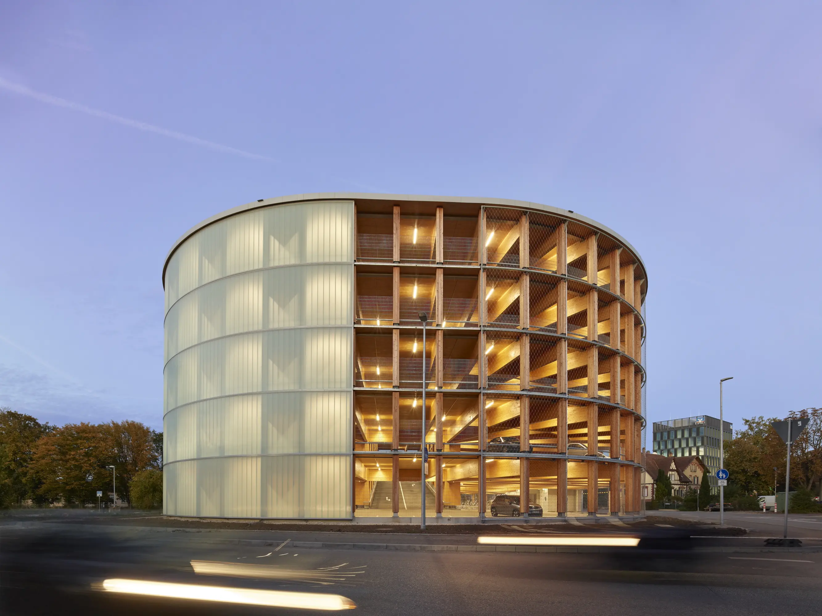 Als Teil der IBA’27 ist in Wendlingen am Neckar das in Deutschland aktuell größte, kreislaufgerechte Parkhaus aus Holz entstanden. Das Gebäude ist durch seine Umnutzbarkeit sowie seine Kreislauffähigkeit maximal zukunftsfähig. Die große Geschosshöhe und die Stützenfreiheit ermöglichen einen künftigen Umbau des Parkhauses in eine Wohn- oder Arbeitswelt mit schönem, belichtetem Innenhof. Ist ein Rückbau des Gebäudes künftig trotzdem notwendig, ist eine sortenreine Trennung und damit die Wiederverwendbarkeit der Materialien garantiert, da keine Verbundmaterialien verwendet wurden.