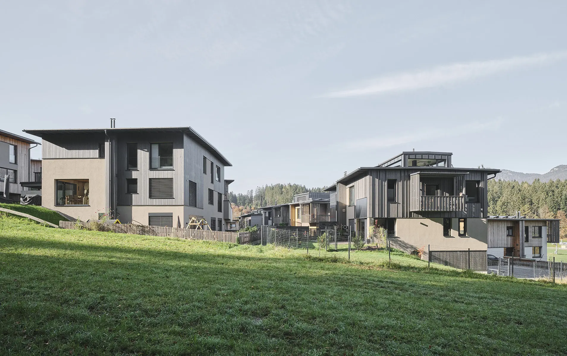 Sonnendorf verbindet naturnahes Wohnen mit einem lebendigen Gemeinschaftsgefühl. Der gemeinschaftliche öffentliche Raum fördert den Austausch, stärkt die Beziehung zur Natur, zum Dorfzentrum und zu den Nachbarn. Unterschiedliche Wohnungstypologien (Reihenhaus, Doppelhaus, mehrgeschossige und barrierefreie Wohnungen) bieten ein für Dörfer ungewöhnlich vielfältiges Wohnformen. So entsteht eine Atmosphäre des Zusammenhalts und der gegenseitigen Unterstützung, die Vereinsamung entgegenwirkt. Die nachhaltigen Häuser mit Holzbau, Erdwärme, kontrollierter Lüftung und PV-Modulen sind Null-Energie-Häuser.