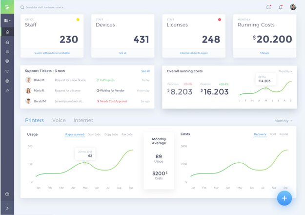 Dieses Portal ist ein maßgeschneidertes Managementmedium für IT-Lösungen, das das Leben von Unternehmen erleichtert. Es ermöglicht ihnen, neue Geräte und Dienste zu durchsuchen und zu bestellen. Es hilft Managern auch, den Benutzern Softwarelizenzen und Hardware mit einer Visualisierung der Informationszusammenfassung zuzuweisen. Mit unterschiedlichen Benutzerberechtigungen können sie entweder kleine Aufgaben delegieren oder die absolute Kontrolle über ihre IT- und monatlichen Kosten übernehmen.