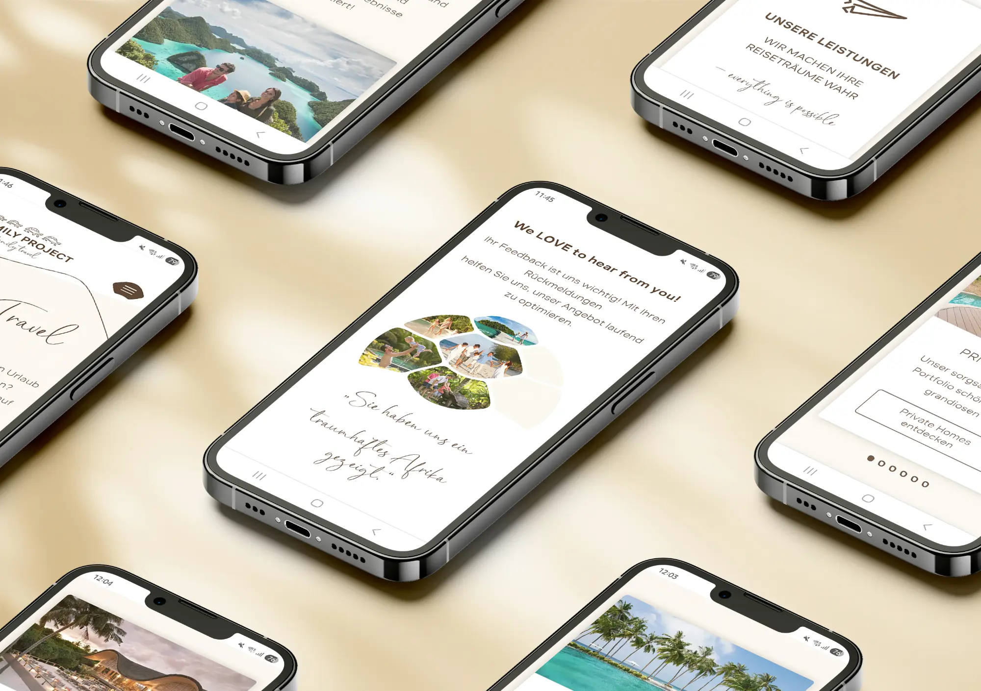 Die Website von The Family Project vereint exklusive Ästhetik mit persönlicher Nähe. Handgezeichnete Icons, organische Formen und tolle Bildwelten schaffen ein einzigartiges Nutzererlebnis. User können z. B. Reiseziele über interaktive Karten erkunden oder schnell über die klare Navigation finden. Die technische Basis vereinfacht die Pflege und das integrierte CRM ist die Grundlage, um Sales-Prozesse effektiver zu gestalten und auszubauen. So wird aus einer Website ein echter Sales-Booster.