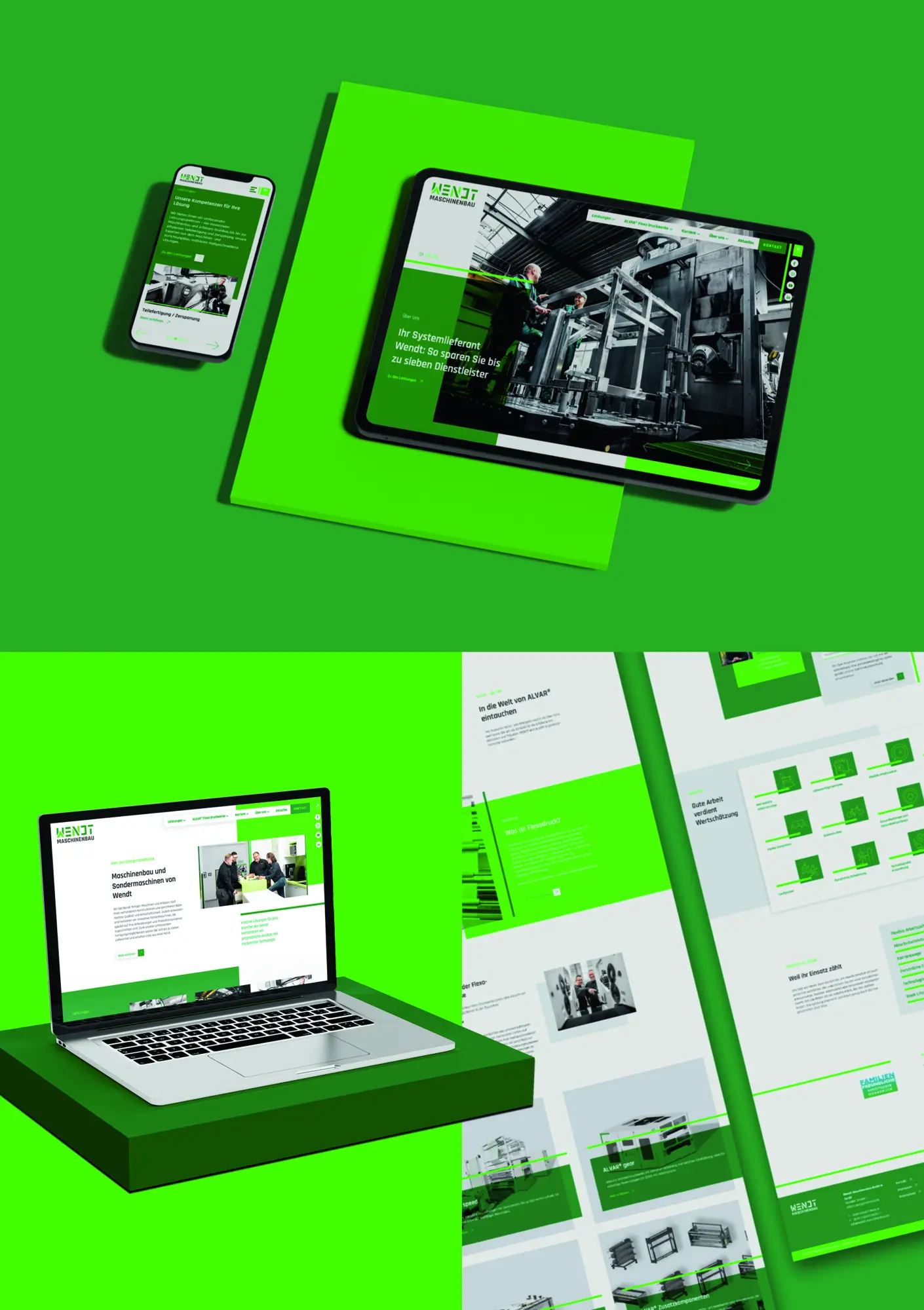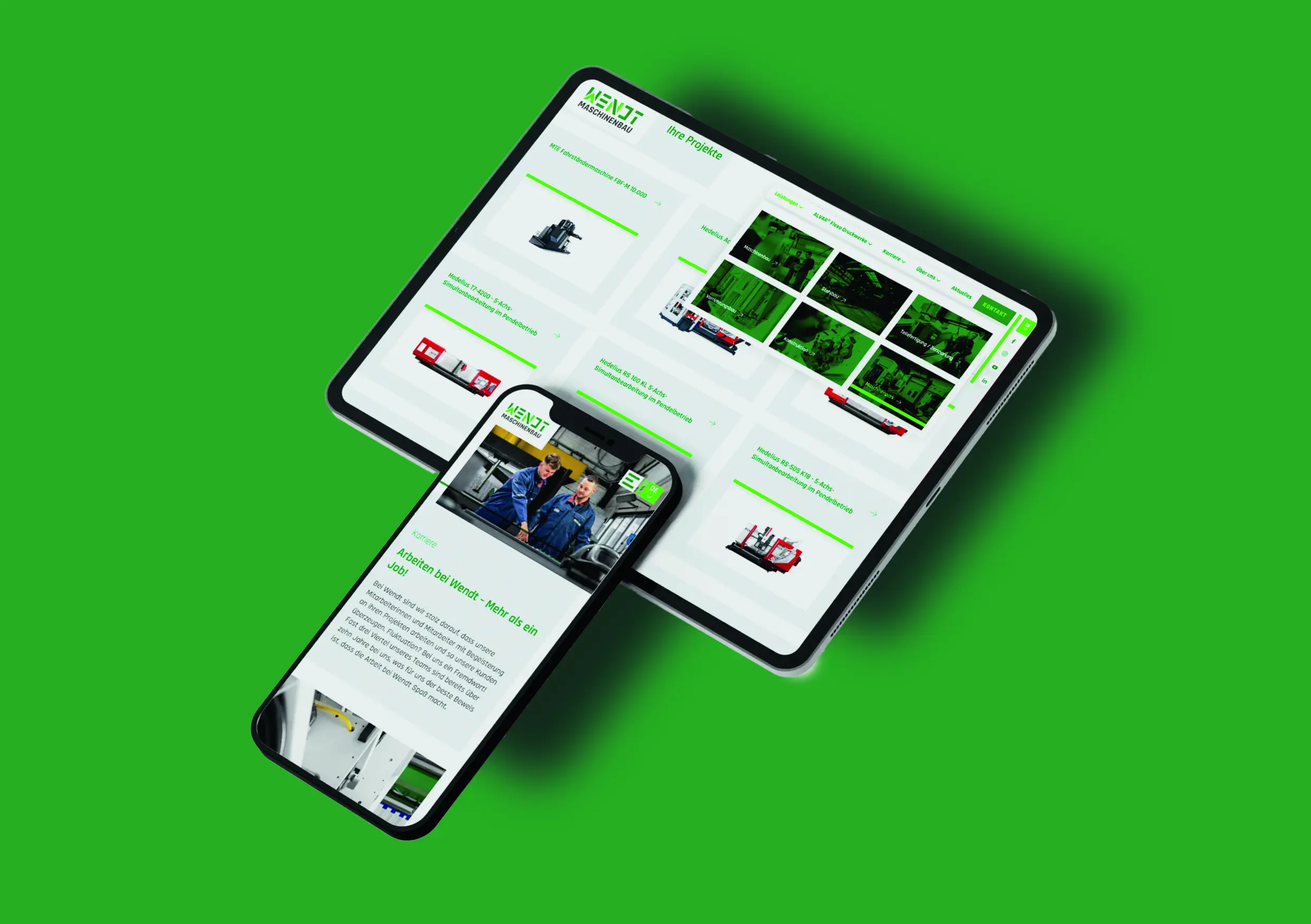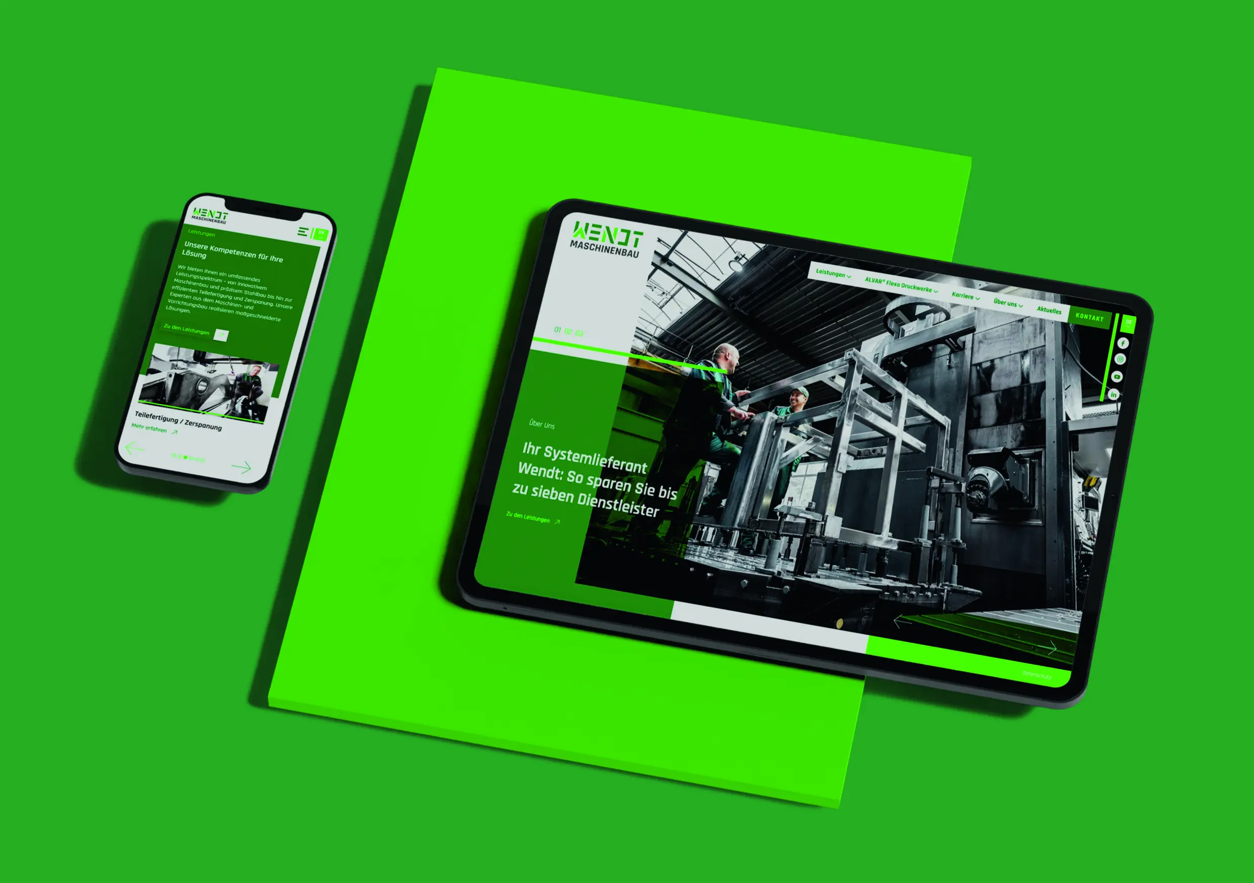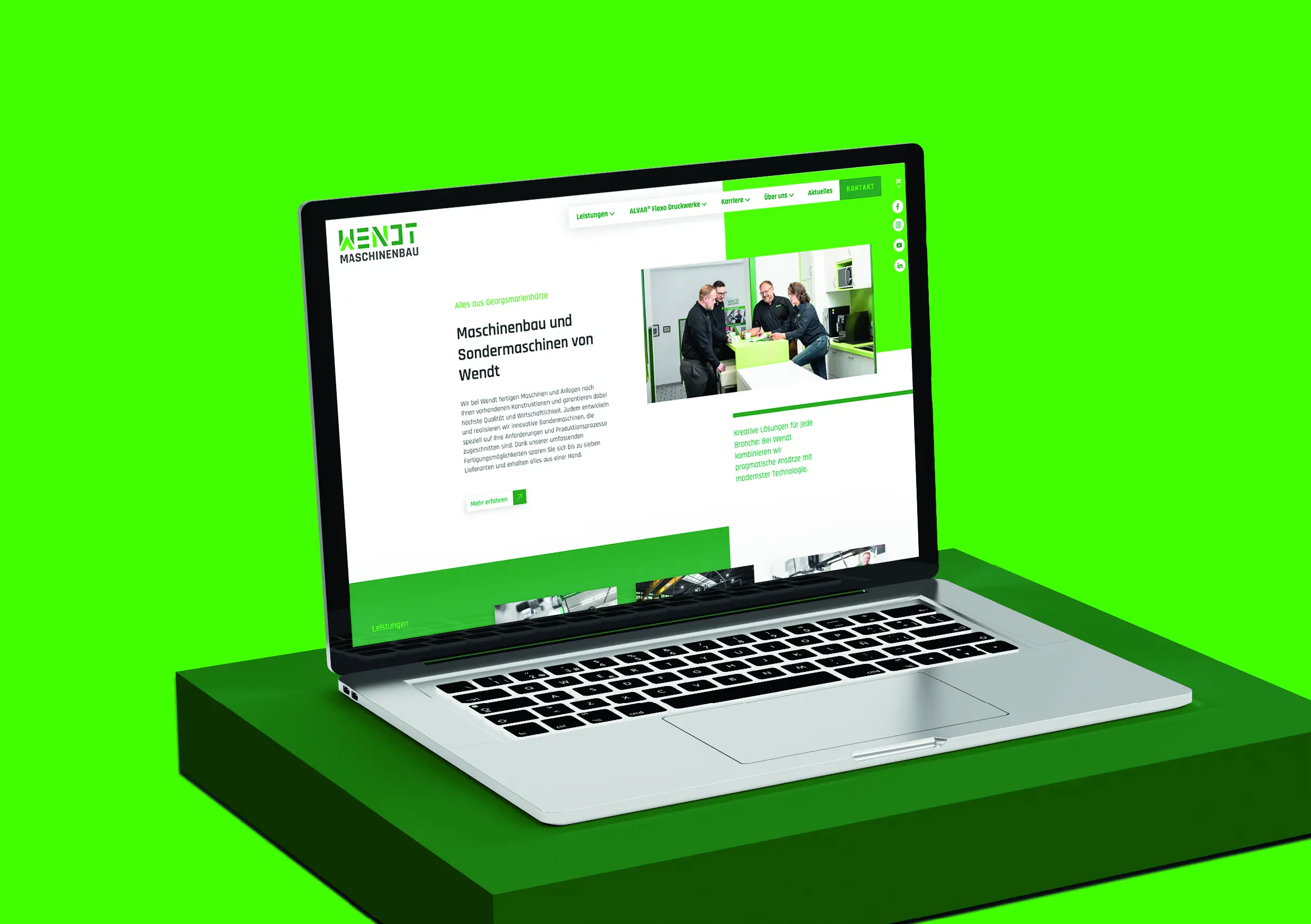 Für Wendt Maschinenbau realisierten wir einen umfassenden Website-Relaunch, der Design, Technik und Inhalt nahtlos vereint. Basierend auf dem bestehenden Logo entwickelten wir ein individuelles, klar strukturiertes Webdesign mit hohem Wiedererkennungswert. Die zweisprachige Umsetzung ermöglicht eine gezielte Ansprache internationaler Zielgruppen. Maßgeschneiderte Texte und eine optimierte UX machen den USP – „Ihr Systemlieferant Wendt – So sparen Sie bis zu sieben Dienstleister“ – erlebbar. Ergebnis: Ein starker digitaler Auftritt, der Kompetenz und Effizienz überzeugend kommuniziert.
